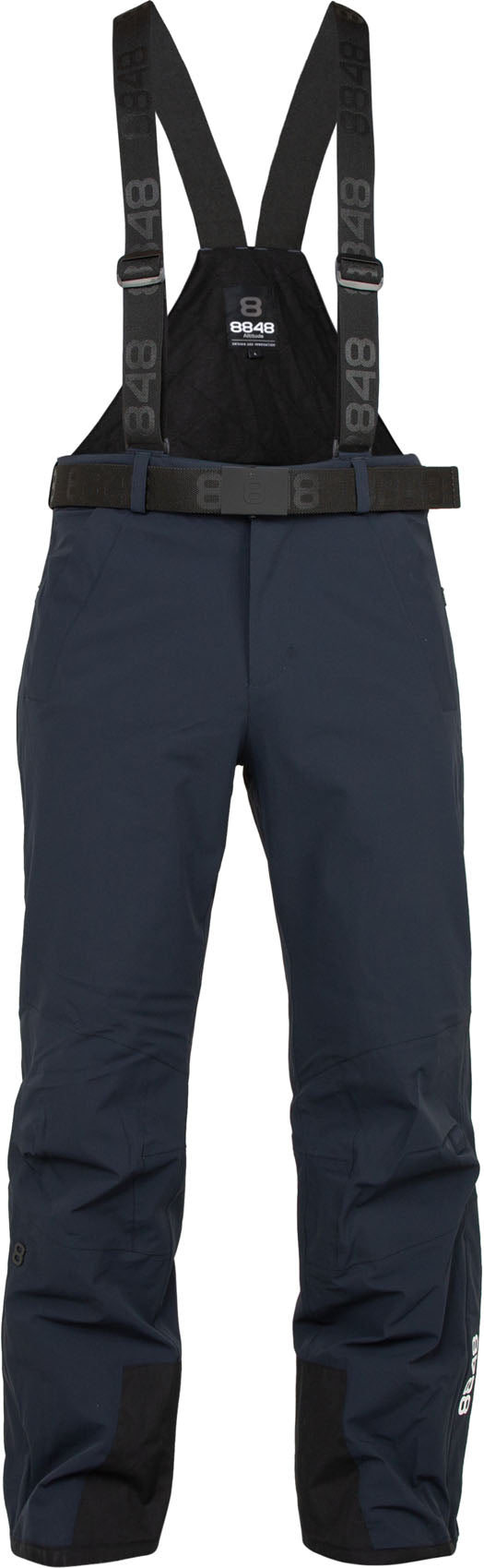 De broek heeft ritsen aan de onderkant en verstevigingspanelen aan de binnenkant van de pijpen tegen scherpe skiranden, steen en ijs.