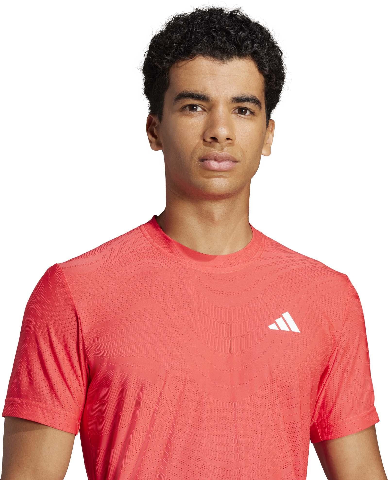 Ga de uitdaging aan met het Tennis Climacool+ Freelift T-shirt Pro. Dit slim-fit, gebreide T-shirt is gedeeltelijk gemaakt van gerecyclede materialen en is daarmee een duurzame keuze voor de veeleisende man. De geavanceerde Climacool+ technologie zorgt ervoor dat je koel en droog blijft, zelfs als de wedstrijd heet wordt. De Freelift-constructie vergroot het bewegingsbereik, terwijl opvallende rode tinten uw vurige passie voor tennis belichamen. Het is niet zomaar een shirt, het is je bondgenoot op het veld.