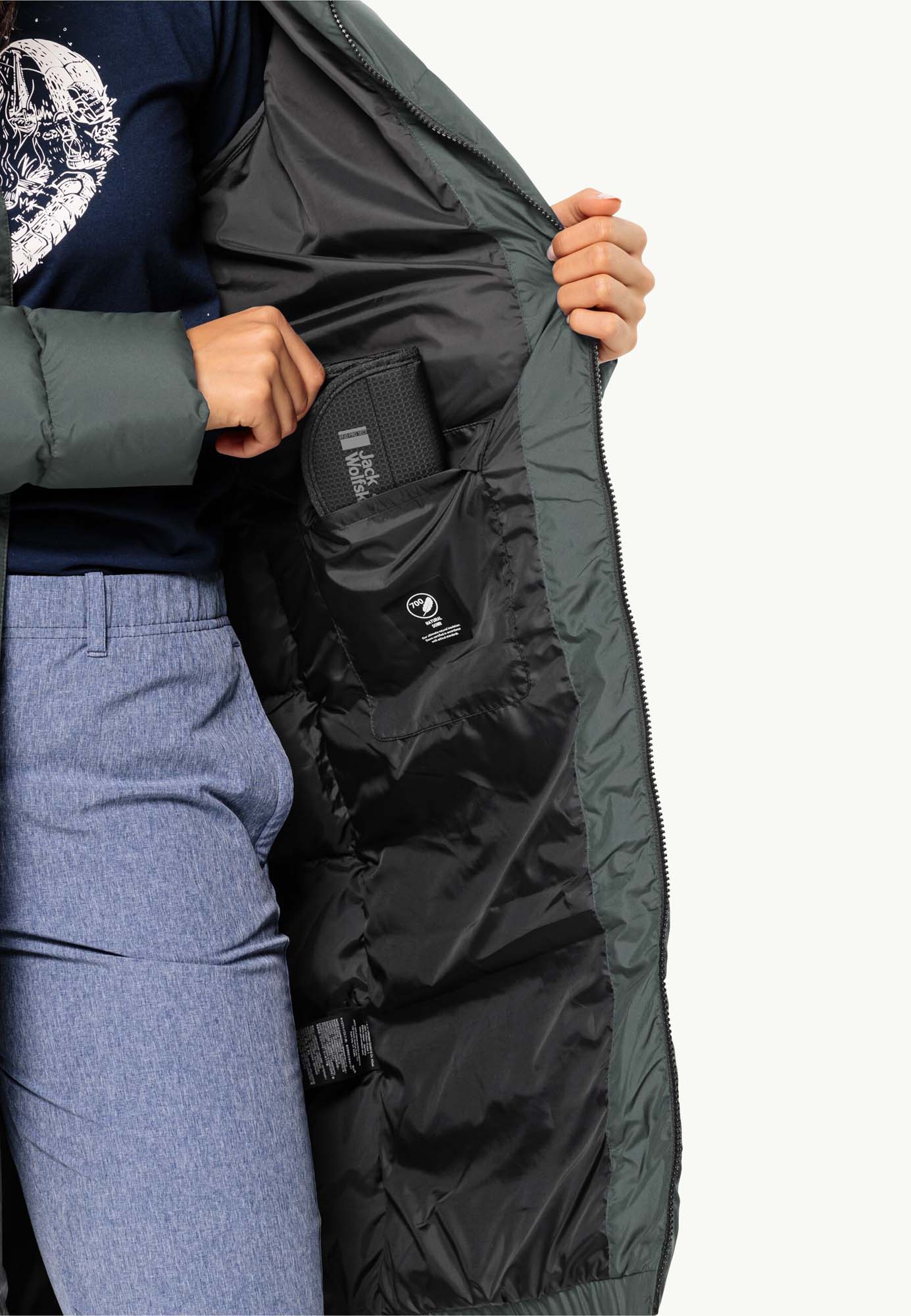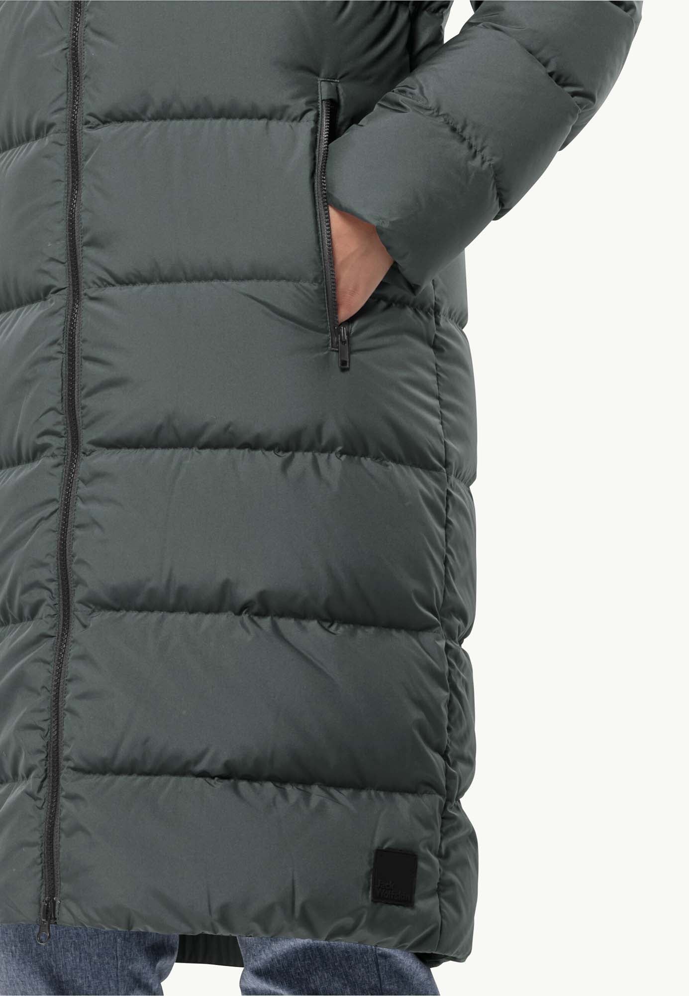 Voor een extra dosis comfort in de winter zorgt deze donsjas dat je warm en comfortabel blijft. Dankzij de vulling van gecertificeerd dons levert de lange jas de warmte waar je in het koude jaargetijde naar verlangt. Het ademende TEXASHIELD-buitenmateriaal is bovendien winddicht en bijzonder goed waterafstotend. Afgerond wordt het hoge draagcomfort door de individueel verstelbare capuchon en extra binnenmanchetten aan de mouwen.