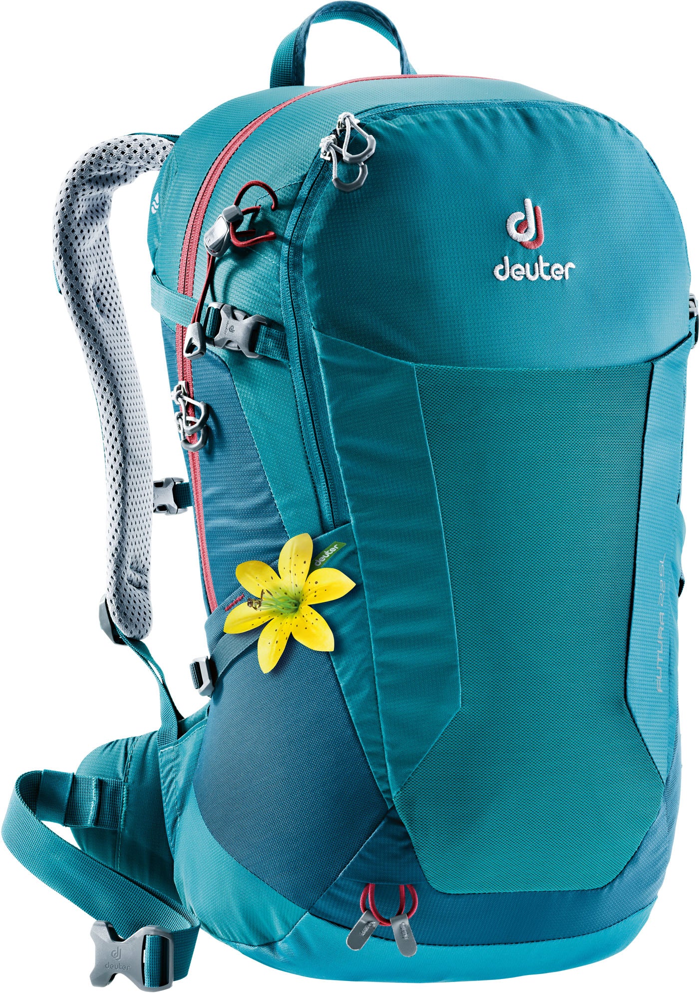 Zeg je Deuter, dan zeg je Futura. Voor het nieuwe seizoen heeft het Duitse merk de bekende Futura rugzakken een ware make over gegeven! De Futura 22 SL is een sportieve en functionele damesrugzak die perfect is voor dagtochten, citytrips of naar kantoor. De constructie met een mesh rugsysteem is een ware revolutie op het gebied van comfort: het nieuwe Aircomfort Sensic rugsysteem combineert een laag gewicht, een perfecte pasvorm, comfortabele bewegingsvrijheid door flexibiliteit en maximale ventilatie perfect met baanbrekende details. Daarnaast is de rugzak onder andere voorzien van Active-Fit schouderbanden die zich automatisch aanpassen, heupvinnen die naar de heup gevormd zijn en een heupband, zijdelingse compressieriemen, elastische zijvakken, lussen voor wandelstokken, een afneembare regenhoes, de mogelijkheid voor een drinksysteem, een verstelbare borstgordel, een handige sleutelhouder en een elastisch voorvak. Alle Deuter SL rugzakken zijn perfect aangepast aan de anatomie van het vrouwenlichaam.