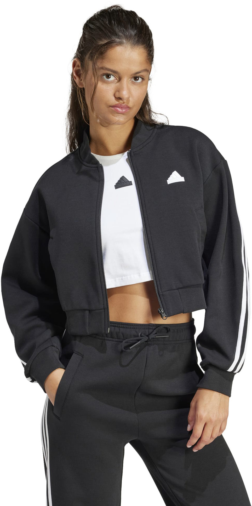 Een adidas bomberjack dat helemaal retro-futuristisch is. Dit jack van een zachte katoenmix uit de Future Icons-collectie combineert sportieve stijl met draaggemak voor elke dag. Het is vervaardigd van premium materiaal en heeft een losvallend model, wat 't perfect maakt om na je workout te dragen, of op weg naar yoga. Langs de mouwen lopen opvallende 3-Stripes voor een snufje iconische stijl. Draag 't over een tanktop voor een relaxte look of rits 't dicht voor een silhouet dat veel meer is dan een vluchtige trend. Laat de wereld zien dat sport altijd en overal heerst.