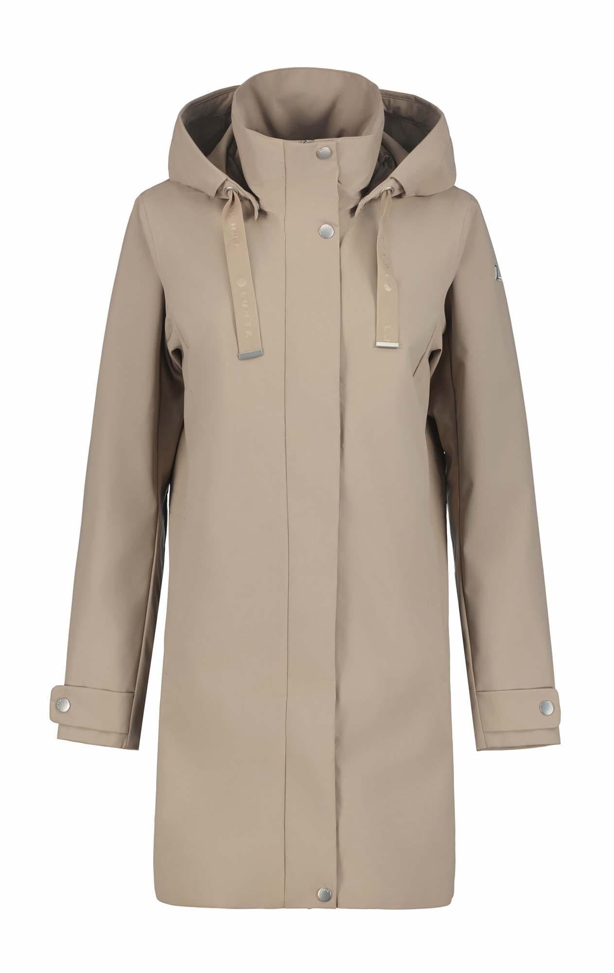De Luhta mantel voor dames is ontworpen voor veelzijdig gebruik en biedt comfort en bescherming onder uiteenlopende weersomstandigheden. De jas heeft een afneembare capuchon met trekkoord, verstelbare manchetten met drukknopen, een verstelbare taille en een tweewegritssluiting met een windflap en drukknopen aan de voorkant. Voor het veilig opbergen van persoonlijke spullen zijn er twee voorzakken met rits en een binnenzak met ritssluiting. De jas is gemaakt van REPREVE® polyester dat afkomstig is van 100% gerecycled materiaal, waaronder gebruikte plastic flessen. Het materiaal is behandeld met een waterafstotende finish en is winddicht, terwijl de meest kritieke naden waterdicht zijn getapet voor extra bescherming. Met een waterkolom van 10.000 mm en een ademend vermogen van 10.000 g/m²/24 uur biedt de jas betrouwbare bescherming tegen regen en wind. De halve voering van ademend mesh verhoogt het draagcomfort, en als onderdeel van de A.W.S. ACTIVE-lijn is deze jas ontwikkeld met oog voor functionaliteit en gebruiksgemak, zowel voor actieve als dagelijkse momenten.