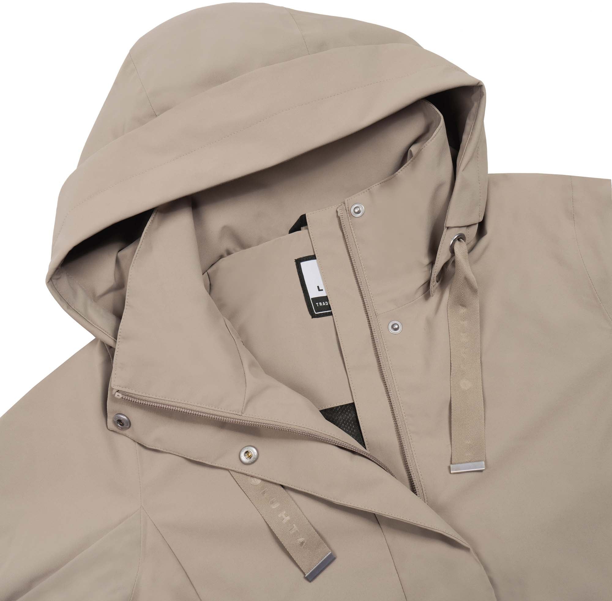 De Luhta mantel voor dames is ontworpen voor veelzijdig gebruik en biedt comfort en bescherming onder uiteenlopende weersomstandigheden. De jas heeft een afneembare capuchon met trekkoord, verstelbare manchetten met drukknopen, een verstelbare taille en een tweewegritssluiting met een windflap en drukknopen aan de voorkant. Voor het veilig opbergen van persoonlijke spullen zijn er twee voorzakken met rits en een binnenzak met ritssluiting. De jas is gemaakt van REPREVE® polyester dat afkomstig is van 100% gerecycled materiaal, waaronder gebruikte plastic flessen. Het materiaal is behandeld met een waterafstotende finish en is winddicht, terwijl de meest kritieke naden waterdicht zijn getapet voor extra bescherming. Met een waterkolom van 10.000 mm en een ademend vermogen van 10.000 g/m²/24 uur biedt de jas betrouwbare bescherming tegen regen en wind. De halve voering van ademend mesh verhoogt het draagcomfort, en als onderdeel van de A.W.S. ACTIVE-lijn is deze jas ontwikkeld met oog voor functionaliteit en gebruiksgemak, zowel voor actieve als dagelijkse momenten.