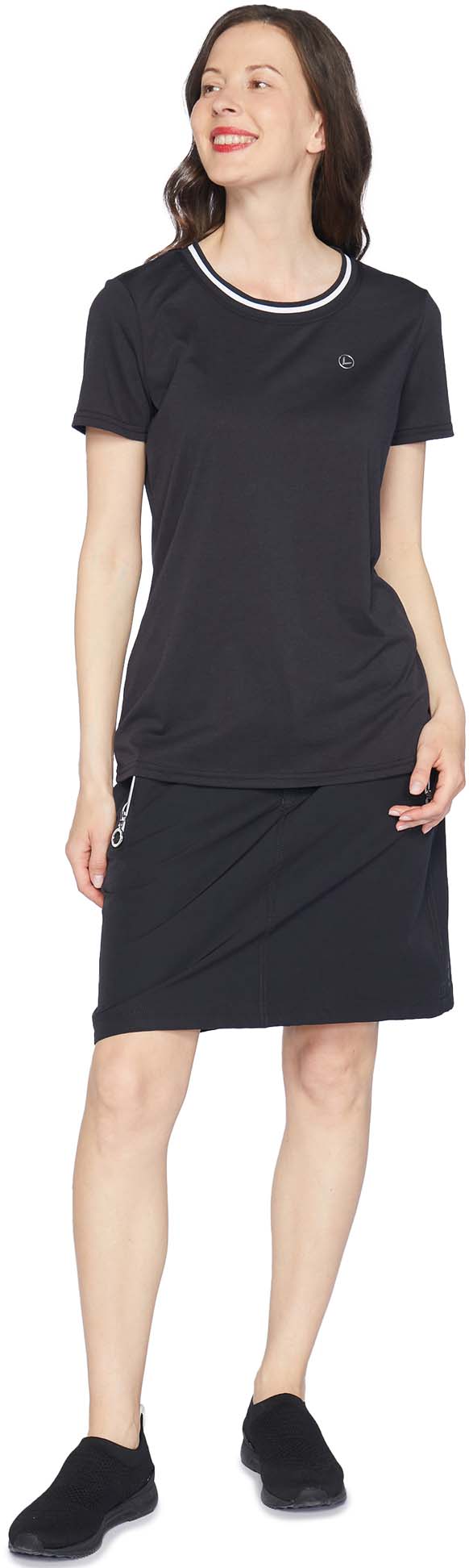 Luhta T-shirt for women. Round neck. Logo label. Functionality and comfort have been paid special attention to in the design process of this A.W.S. ACTIVE product, which makes it fit for both energetic and relaxed activities. The fabric allows moisture to evaporate quickly, keeping you dry and comfortable at all times. The 4-way stretch material stretches to all directions giving a maximum freedom of movement.