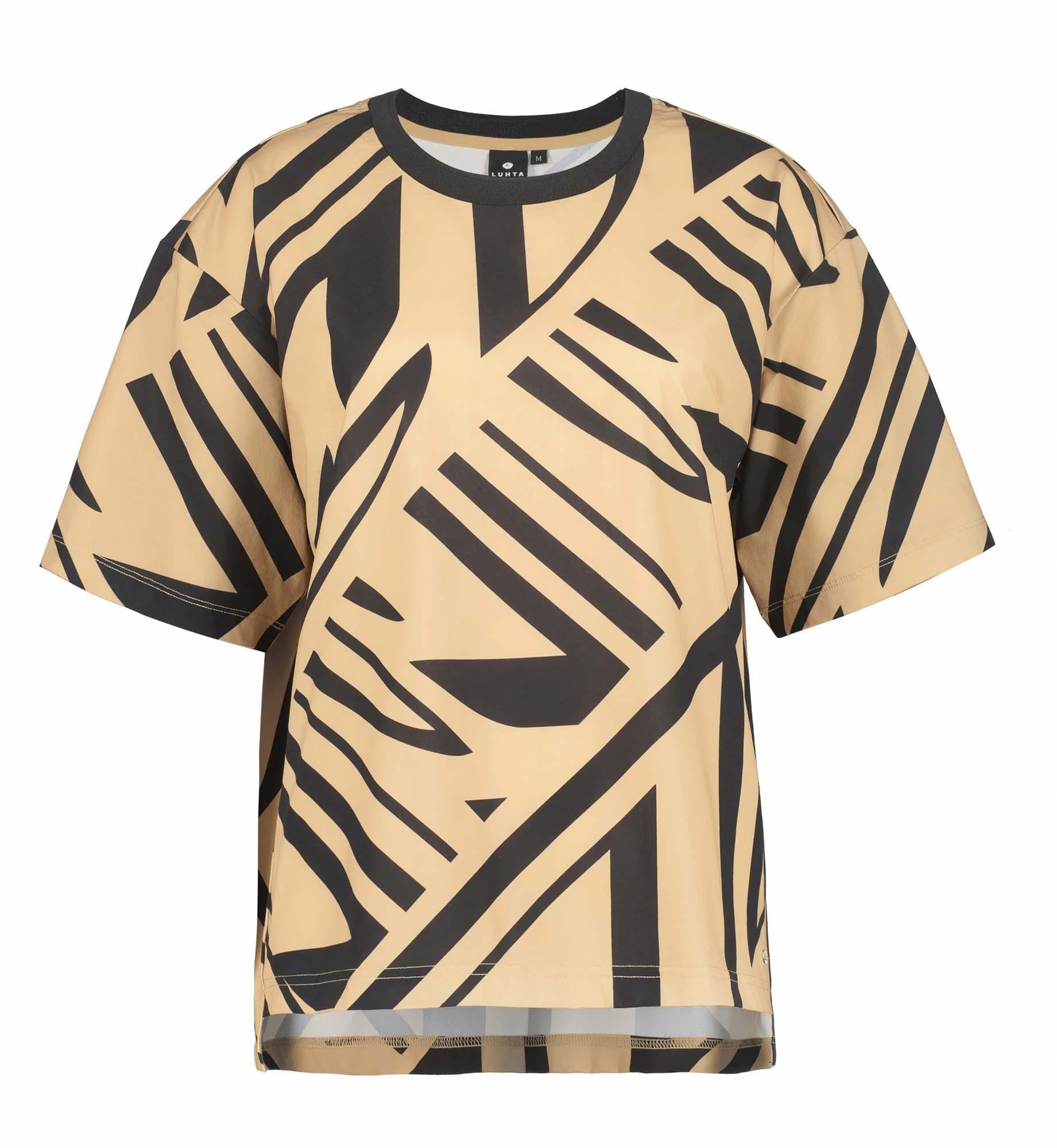 Het Luhta T-shirt voor dames heeft een ronde hals, een subtiel logolabel en een opvallend printpatroon dat het shirt een sportieve uitstraling geeft. Het is gemaakt van een innovatief materiaal dat een geavanceerd alternatief vormt voor traditionele stoffen en deels bestaat uit bio-based Sorona®-polymeer, dat op laboratoriumschaal mechanisch recyclebaar is met PET. Dankzij het 4-way stretchmateriaal biedt het T-shirt maximale bewegingsvrijheid in alle richtingen. Als onderdeel van de A.W.S. ACTIVE-lijn is dit model ontwikkeld met speciale aandacht voor functionaliteit en comfort, waardoor het perfect geschikt is voor zowel actieve bezigheden als dagelijks gebruik.