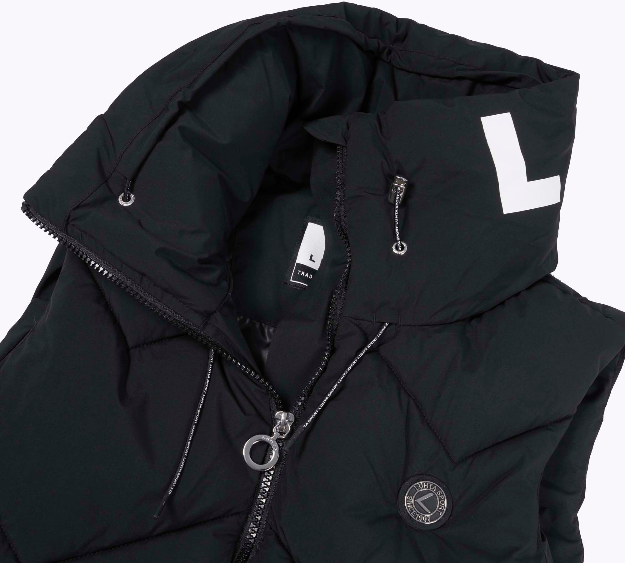 Luhta-vest voor dames. Verstelbare kraag. Twee voorzakken met ritssluiting. Tweewegritssluiting aan de voorkant. Lange ritssluitingen aan de zijkant. Decoratieve afdruk. Logo-label. Waterkolom 10.000 mm. Ademend vermogen 5.000 g\m2\24u. De vulling is gemaakt van donsimitatie en biedt een uitstekende thermische isolatie in verhouding tot het lichte gewicht. Bij het ontwerpproces van dit AWS ACTIVE-product is speciale aandacht besteed aan functionaliteit en comfort, waardoor het geschikt is voor zowel energieke als ontspannen activiteiten. Het oppervlak van de stof is behandeld met een waterafstotende afwerking. Het product is waterafstotend gemaakt zonder PFC's. Dit winddichte materiaal biedt optimale windbescherming en warmte. Warme isolatie.