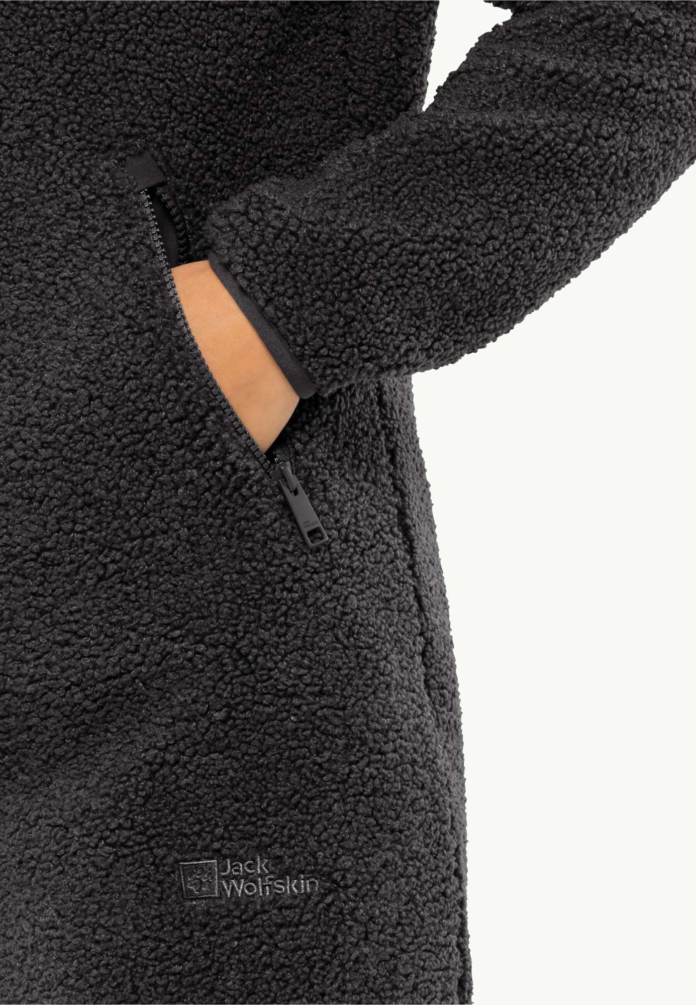 Deze jas is gemaakt van zacht sherpa-fleece en houdt behaaglijk warm. Dankzij de hoge kraag, het lange model en de twee heupzakken beschermt de ademende fleece jas optimaal tegen kou. Zowel als extra tussenlaag als los geeft hij aangename warmte.