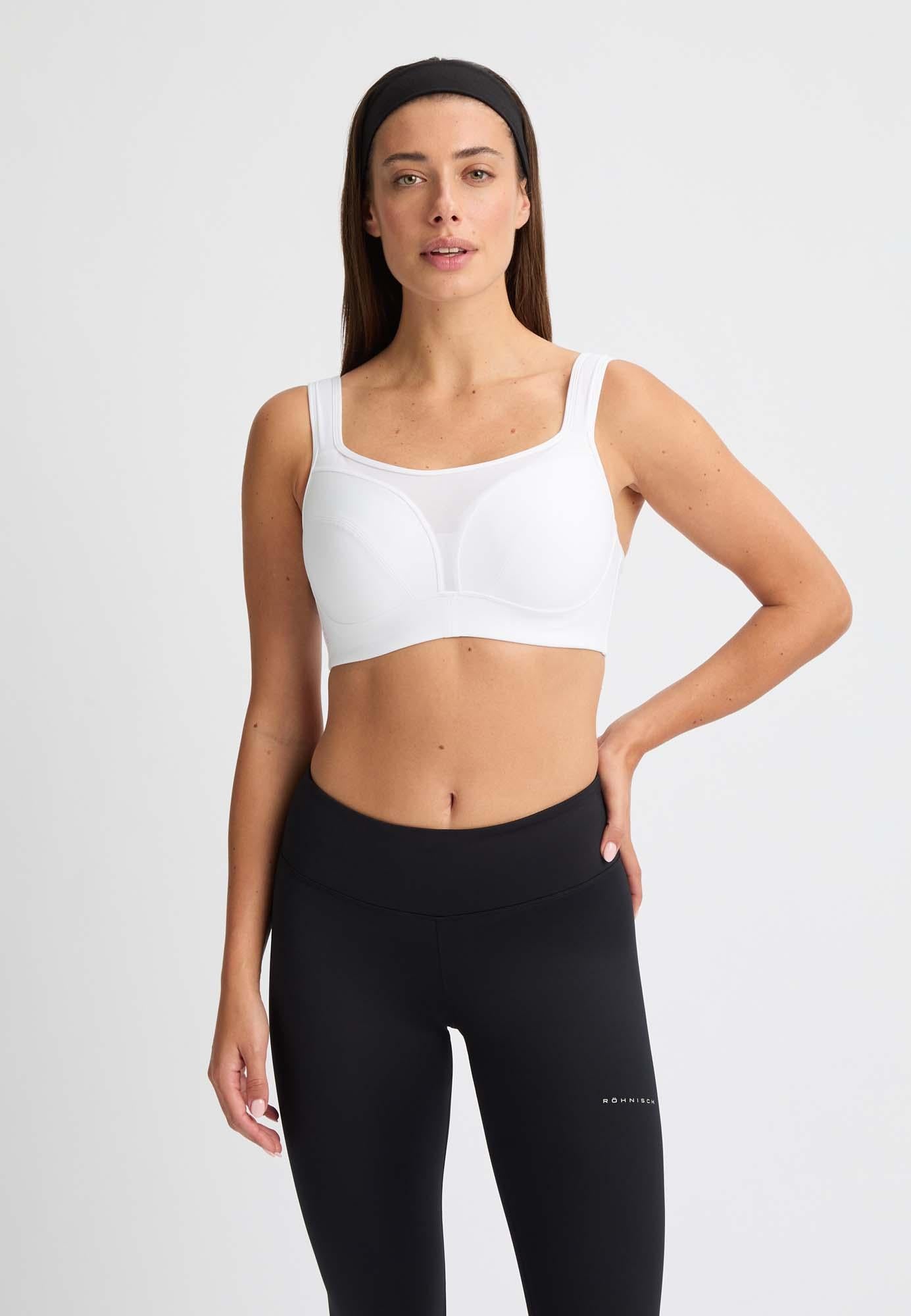 High Support is een zwarte sportbeha gemaakt van gerecycled polyester. Hij is verkrijgbaar in een hele reeks verschillende maten voor de grotere borstomvang. Maak dit model met voorgevormde cups en mesh details perfect op maat met behulp van de verstelbare bandjes en de haak aan de achterkant. De brede haak met oog middenachter aan deze sportbeha zorgt voor de best mogelijke ondersteuning. Het resultaat is een soepele, goed ondersteunende sportbeha voor iedereen die een grotere maat cups nodig heeft. High Support is afgerond met een Röhnisch-logotekst op de zijkant. Verkrijgbaar in de maten: 70-90 C, 70-90 D, 70-90 E, 70-90 F, 70-90 G.