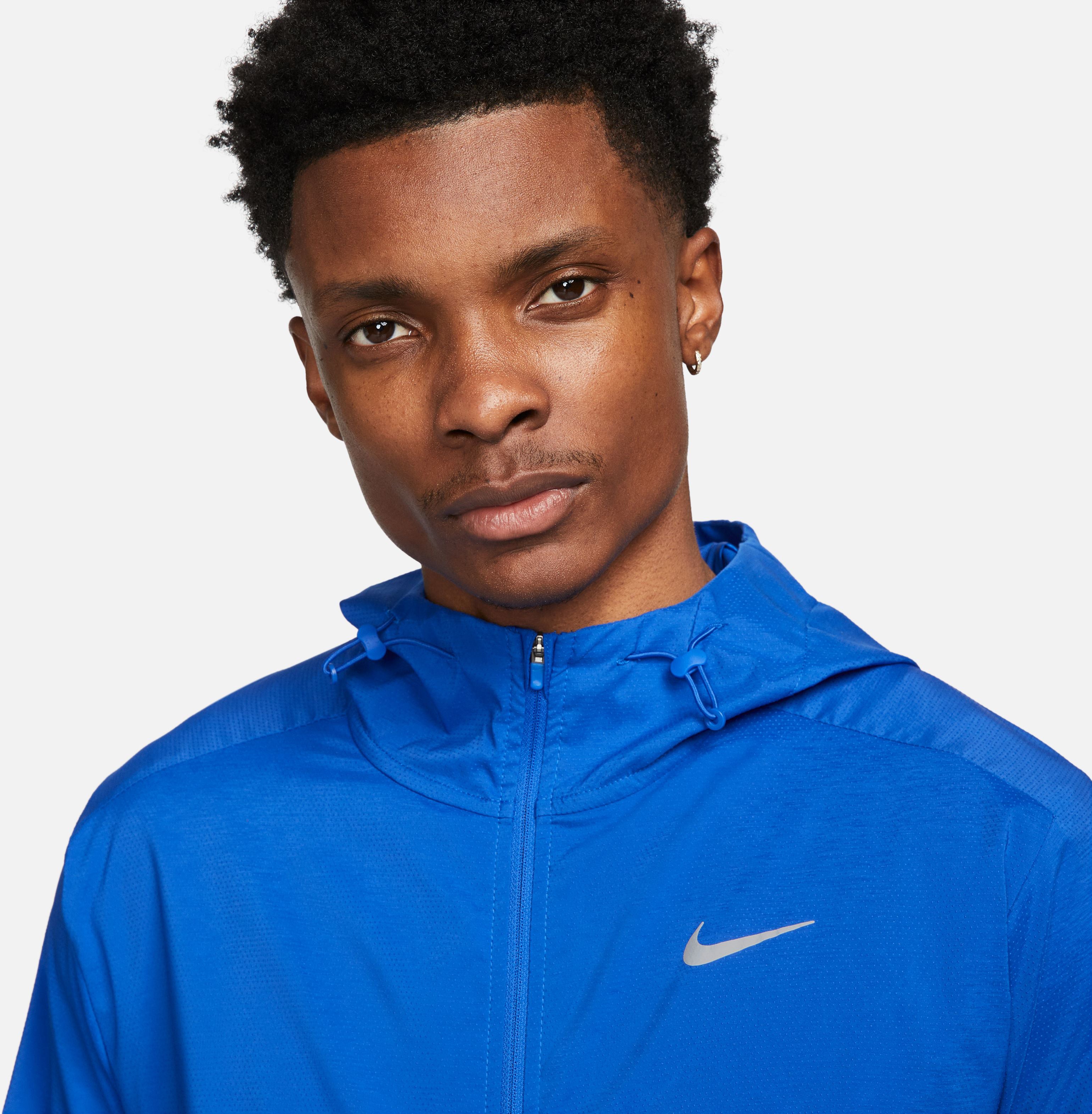 Nike Windrunner Repel Hardloopjack voor heren Ons iconische Windrunner jack is klaar voor het volgende hoofdstuk. Droog blijven is nooit meer een probleem in dit superlichte, waterafstotende hardloopjack, gemaakt voor regenachtige dagen/ En op zonnige dagen? De geïntegreerde UV-bescherming beschermt je dan ook. Bovendien is het jack opvouwbaar en ontworpen voor veel luchtcirculatie en ventilatie, zodat je het koel houdt tijdens je volgende run, hoelang die ook is. Klaar voor regen en zonneschijn Het geweven materiaal rekt in twee richtingen, en is superlicht en waterafstotend, zodat je droog blijft bij nat weer. Dit product biedt UVA- en UVB-bescherming tegen de zon op plaatsen die door het kledingstuk worden bedekt. Gebruik van goede zonnebrandcrème wordt aangeraden om blootgestelde huid te beschermen. Opvouwbaar Verborgen binnenzak om het jack eenvoudig op te bergen als je het niet gebruikt. Fris en comfortabel Ventilatieopeningen op de rug zorgen voor luchtcirculatie voor een fris gevoel als je onderweg bent. Windrunner design V-vormige designlijnen aan de voorkant (in een hoek van 26 graden) zijn geïnspireerd op het originele Nike Windrunner trainingsjack uit 1978. Het jack is niet alleen favoriet bij sporters, maar is ook uitgegroeid tot echte streetwearessential. De capuchon heeft een warmer om de weersinvloeden uit je gezicht te houden. Mesh vlakken onder de armen zorgen voor extra ventilatie. Zakken met rits houden je handen warm of bieden ruimte om je essentials veilig op te bergen.