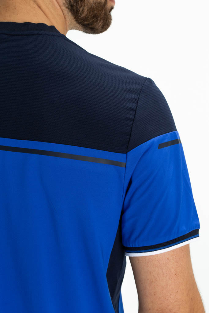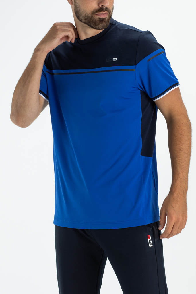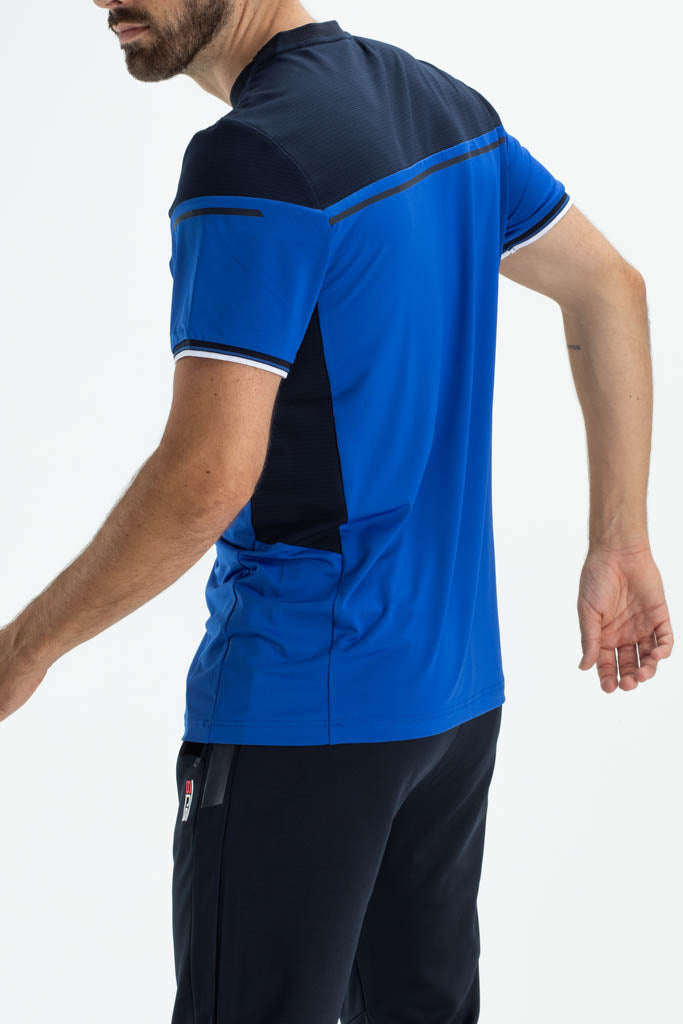 Dit is een trendy t-shirt van single jersey gecombineerd met extra ademende mesh stof bij de schouders en onder de mouwen. Als opvallende detail heeft dit shirt strepen van seal-on tape en contrasterende strepen langs de mouwen.