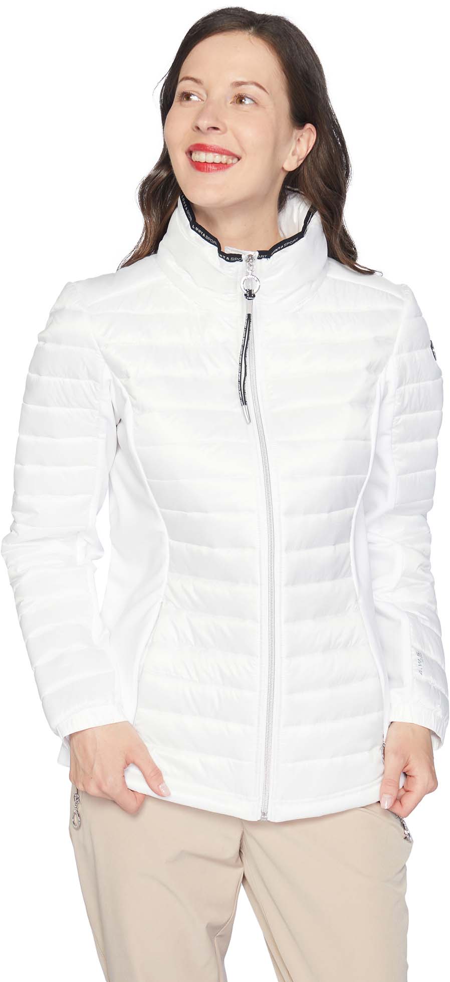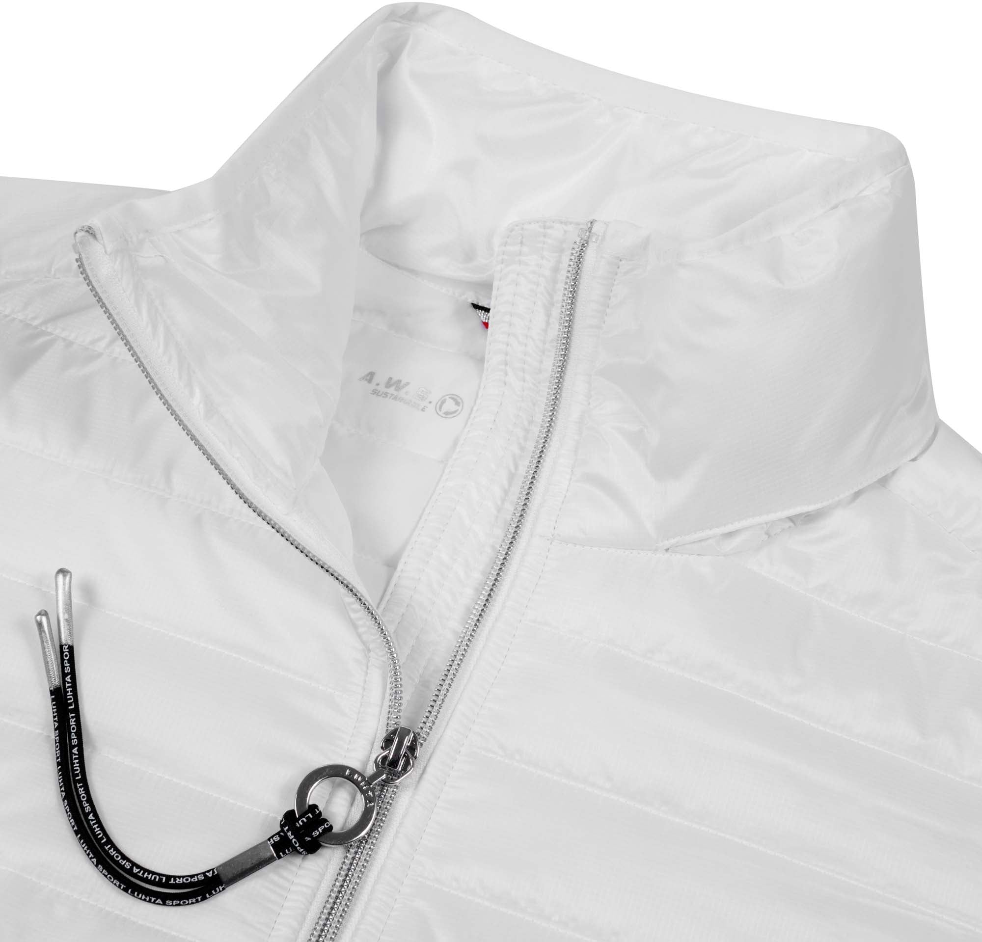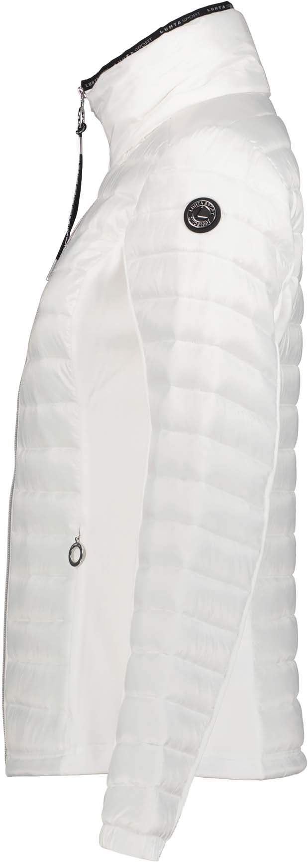 Luhta jas voor dames. Elastische manchetten. Twee voorzakken met ritssluiting. Ritssluiting aan de voorkant. Verstelbare zoom. Logo-label. Er is speciale aandacht besteed aan functionaliteit en comfort tijdens het ontwerpproces van deze A.W.S. ACTIVE product, waardoor het geschikt is voor zowel energieke als ontspannen activiteiten. Het product is waterafstotend gemaakt zonder PFC's. Dit hybride kledingstuk is gemaakt van een combinatie van verschillende materialen om een balans te vinden tussen bescherming, comfort en functionaliteit. Bevat REPREVE®-polyester gemaakt van 100% gerecyclede materialen, inclusief plastic flessen na consumptie. Dit product bevat gerecyclede materialen, waardoor de impact op ons milieu kleiner is. Het oppervlak van de stof is behandeld met een waterafstotende afwerking. Dit winddichte materiaal biedt optimale windbescherming en warmte. Lichte isolatie.