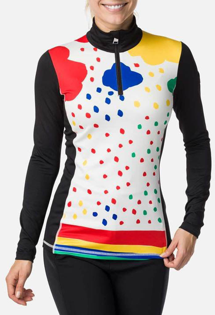 De Franse modeontwerper Jean-Charles de Castelbajac zet zijn handtekening op deze Bessi top voor dames met gedurfde afbeeldingen in regenboogtinten. De skitop is gemaakt van een lichte, rekbare stof met een behaaglijke geborstelde binnenkant voor een zacht gevoel op de huid. Een slanke pasvorm volgt jouw rondingen.