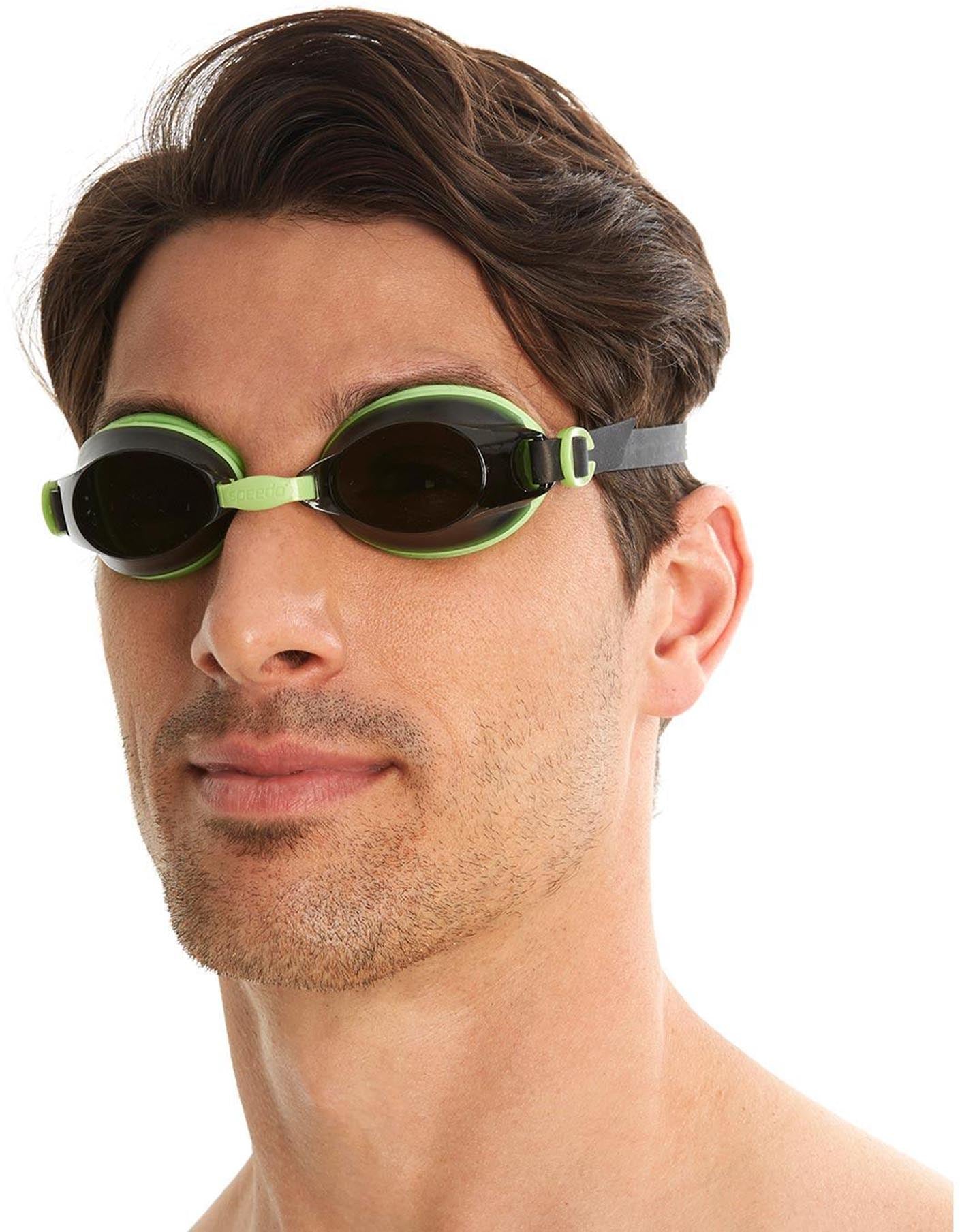 De Jet zwembril vanSpeedo is ideaal voor de regelmatige zwemmer tijdens vakantie of fitness in het zwembad.Deze actieve zwembril is voorzien van Anti-Fog-technologie voor een helder, ononderbroken zicht op het zwembad. Een dubbele hoofdband en verstelbare neusbrug zorgen voor een veilige en optimale pasvorm. De UV lens van deze Speedo zwembril beschermt de ogen tegen zonnestralen.