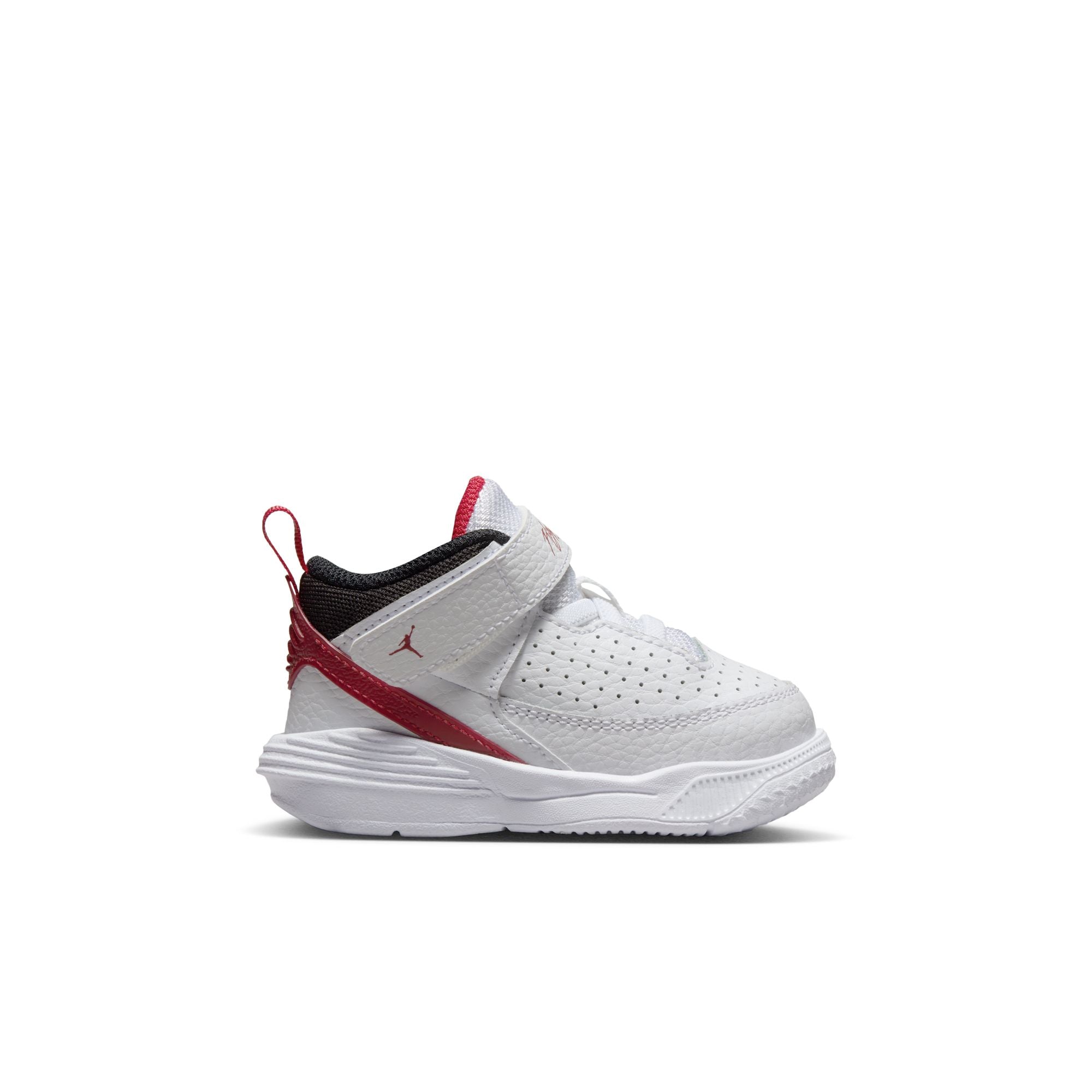Jordan Max Aura 5 Schoenen voor baby's/peuters Als je kleintje een schoen nodig heeft die de hele week kan worden gedragen en de hele dag comfortabel zit, kies dan de Max Aura 5. Dit paar schoenen is geïnspireerd op de AJ3 en geeft de klassieker een moderne draai. Ze zijn gemaakt van sterk synthetisch leer en textiel en de combinatie van elastische veters en klittenbandsluiting zorgt ervoor dat de schoen makkelijk aan en uit gaat. Je kleintje is helemaal klaar voor dagen vol plezier.De klittenbandsluiting is veilig en makkelijkStevig plastic rond de hak geeft je kleintje extra ondersteuningRubberen buitenzool biedt kleine voetjes grip op elke ondergrond.