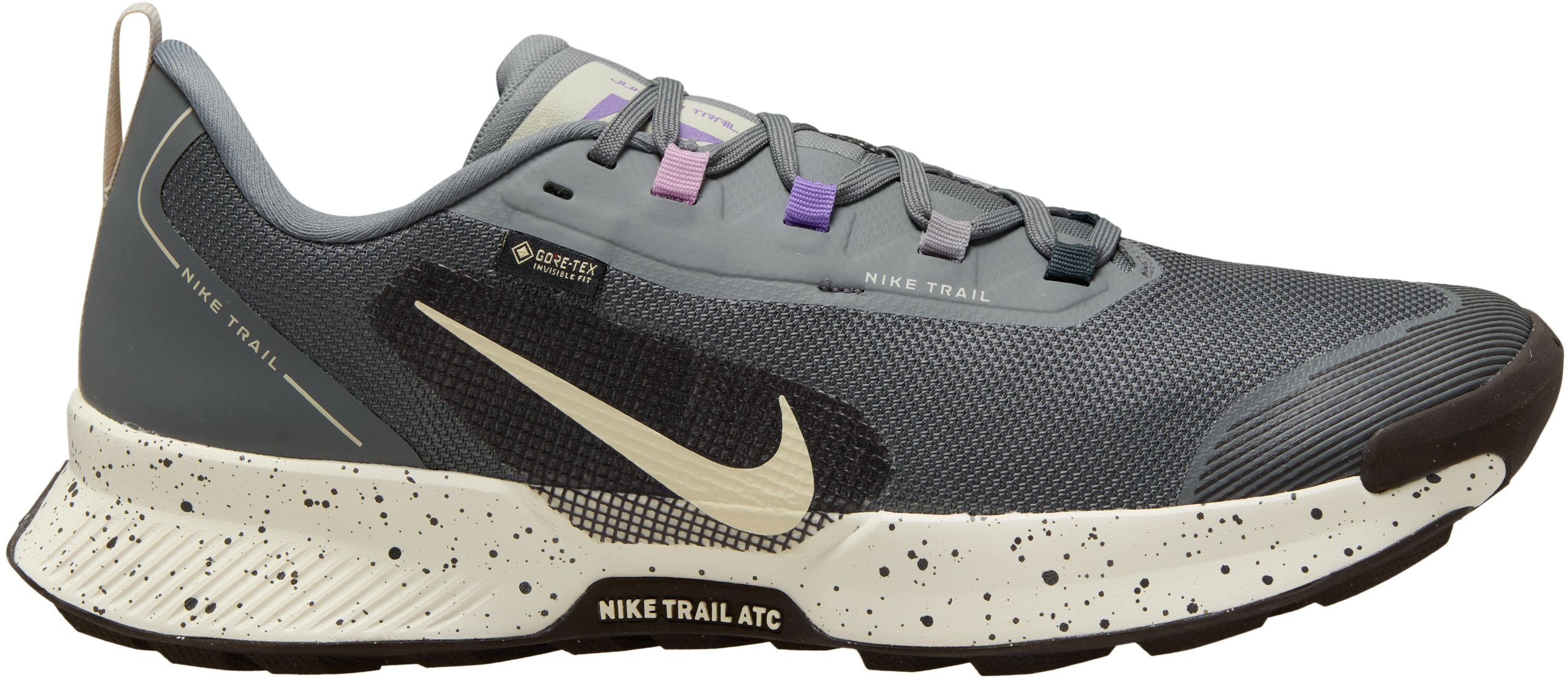 Nike Juniper Trail 3 GORE-TEX Waterdichte trailrunningschoenen voor heren Als het weer het enige is dat tussen jou en de baan staat, kun je je verdediging versterken met de Juniper Trail GTX 3. De schoenen zijn gecoat met waterdicht GORE-TEX om je droog te houden in alle omstandigheden en tijdens alle seizoenen. De schoen is uitgerust met Nike All Terrain Compound grip en zorgvuldig vervaardigd met een Comfiride middenzool zodat hij alle omstandigheden aan kan. Perfect voor regenachtige runs, doorweekte wandelingen met de hond en plassen als je van de stoep het pad op gaat. Blijf droog Een volledige GORE-TEX laag houdt water buiten en zorgt dat je voeten droog blijven. Klaar om te hardlopen Onze Nike Trail ATC buitenzool is gemaakt met een all-terrain-materiaal dat geweldig is bij zowel nat als droog weer. Het biedt optimale grip op elk oppervlak en behoudt zijn stevigheid voor een soepele ervaring. Comfortabele loopervaring Het foam over de volledige lengte van de middenzool zorgt voor een zachte feel en demping. Een flexibel middenvoetsysteem verbindt de boven- en middenzool voor meer ondersteuning en stabiliteit. Zacht gevoel We hebben de aanraakpunten langs het foam van de kraag en de tong verzacht om irritatie en vervelende schuring te voorkomen wanneer je je kilometers maakt.