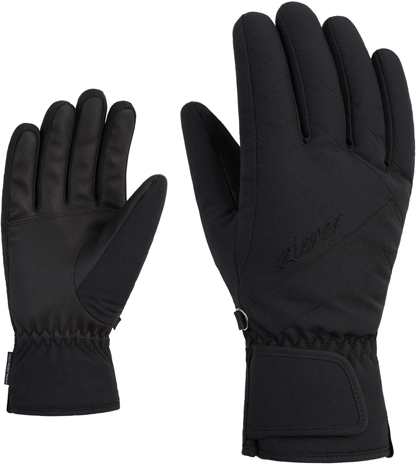 De sportieve, modieuze ZIENER damesskihandschoenen KAITI AS® LADY zijn voorzien van het waterdichte, winddichte ZIENER AQUASHIELD®-membraan om de handen warm en droog te houden. De compacte handpalmen zorgen voor een optimale krachtoverdracht en grip op de skistokken. Het elastische buitenmateriaal zorgt voor perfecte bewegingsvrijheid. De manchetten sluiten perfect aan met behulp van brede klittenbanden. Het product bevat gerecycled materiaal – voor een hulpbronnenbesparende benadering van de bescherming van het milieu. ZIENER heeft ook een versie van de handschoenen uitgebracht met een SOS ID. Bij een ongeval kunnen reddingsdiensten toegang krijgen tot de belangrijkste patiëntinformatie door de QR-code op de handschoenmanchet te scannen.
