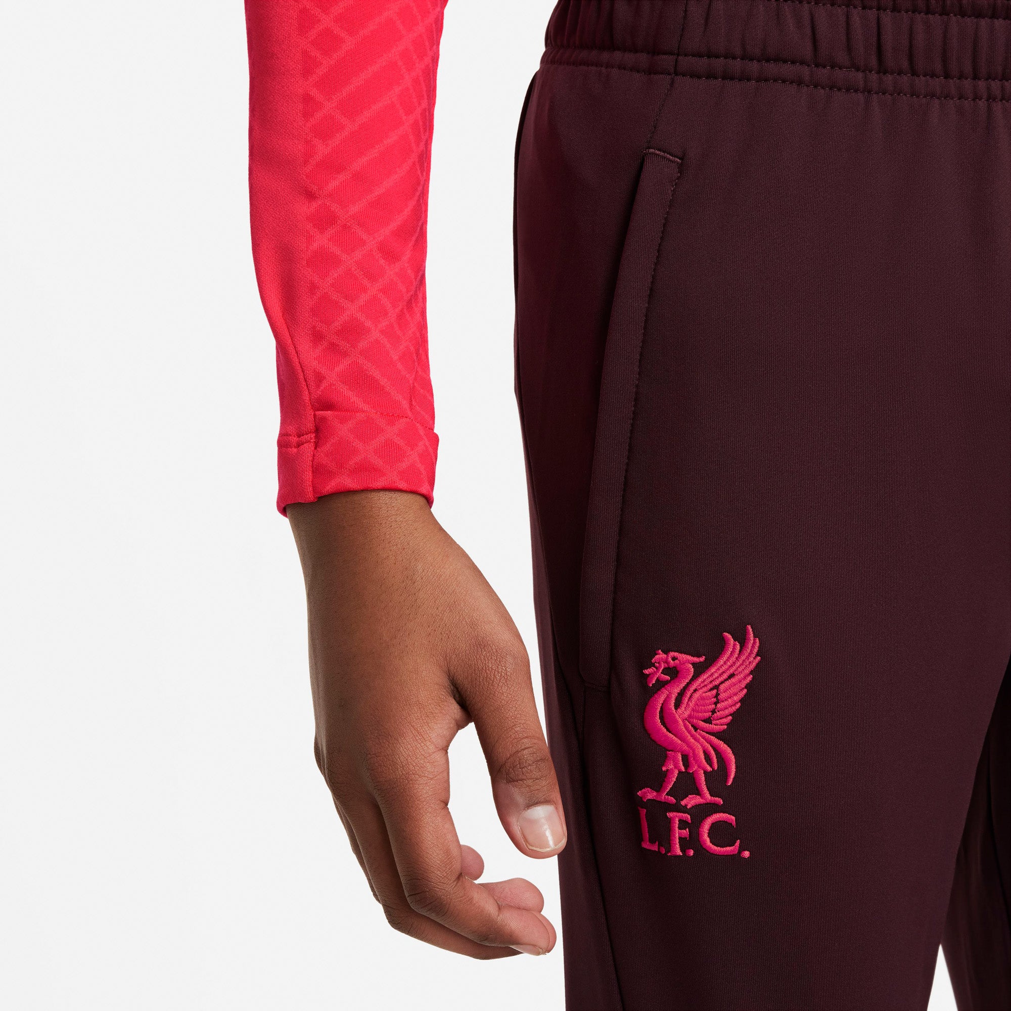TIL JE TRAINING NAAR EEN HOGER NIVEAU. De Liverpool FC Strike broek heeft designdetails die speciaal zijn aangepast voor de opkomende sterren van het voetbal. Een gestroomlijnde pasvorm zorgt ervoor dat er niets tussen jou en de bal komt. Het zweetafvoerende materiaal houdt je koel en kalm terwijl je je vaardigheden verfijnt. Blijf koel Nike Dri-FIT technologie voert zweet weg van je huid voor snellere verdamping, zodat je droog en comfortabel blijft. Veilige opbergruimte In de ritszakken kun je je essentials opbergen. Veelzijdige stijl Dankzij de ritsen bij de zoom kun je je makkelijk omkleden terwijl je je (voetbal)schoenen aan hebt.