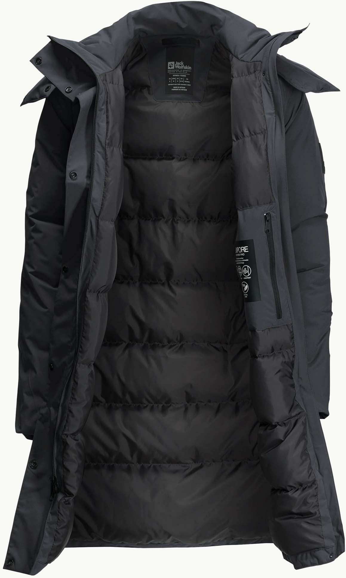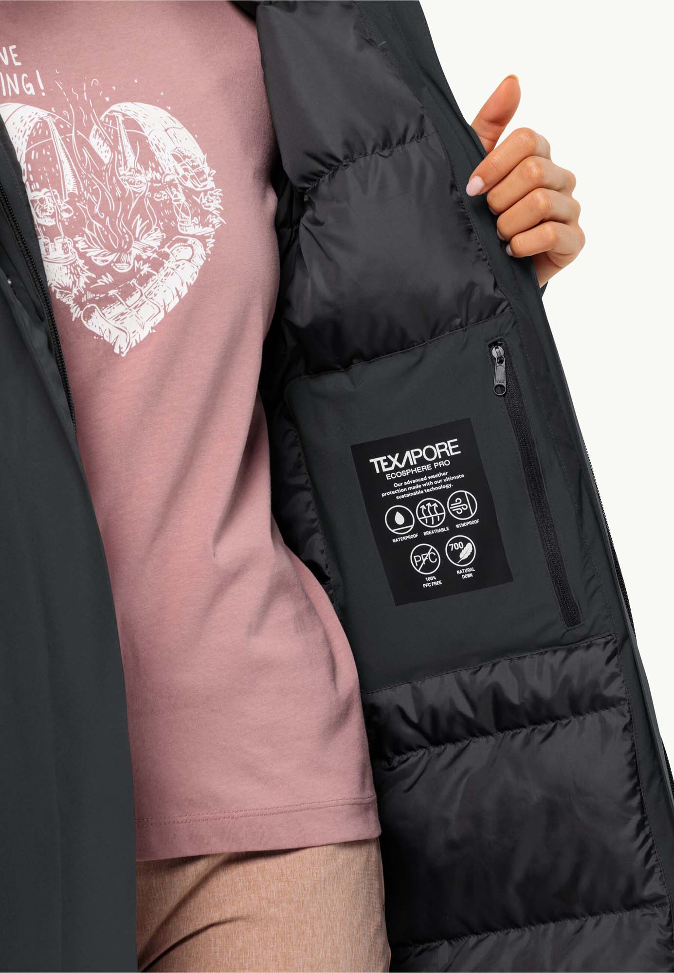 Functioneel design en een moderne look deze jas past bij elke outfit. Voor meer bewegingsvrijheid in het leven van alledag kunnen de zijsplitten met behulp van ritssluitingen zo ver worden geopend als je wilt. Het water- en winddichte materiaal TEXAPORE van de winterjas is ademend en maakt met zijn aandeel stretch de jas comfortabel om te dragen.