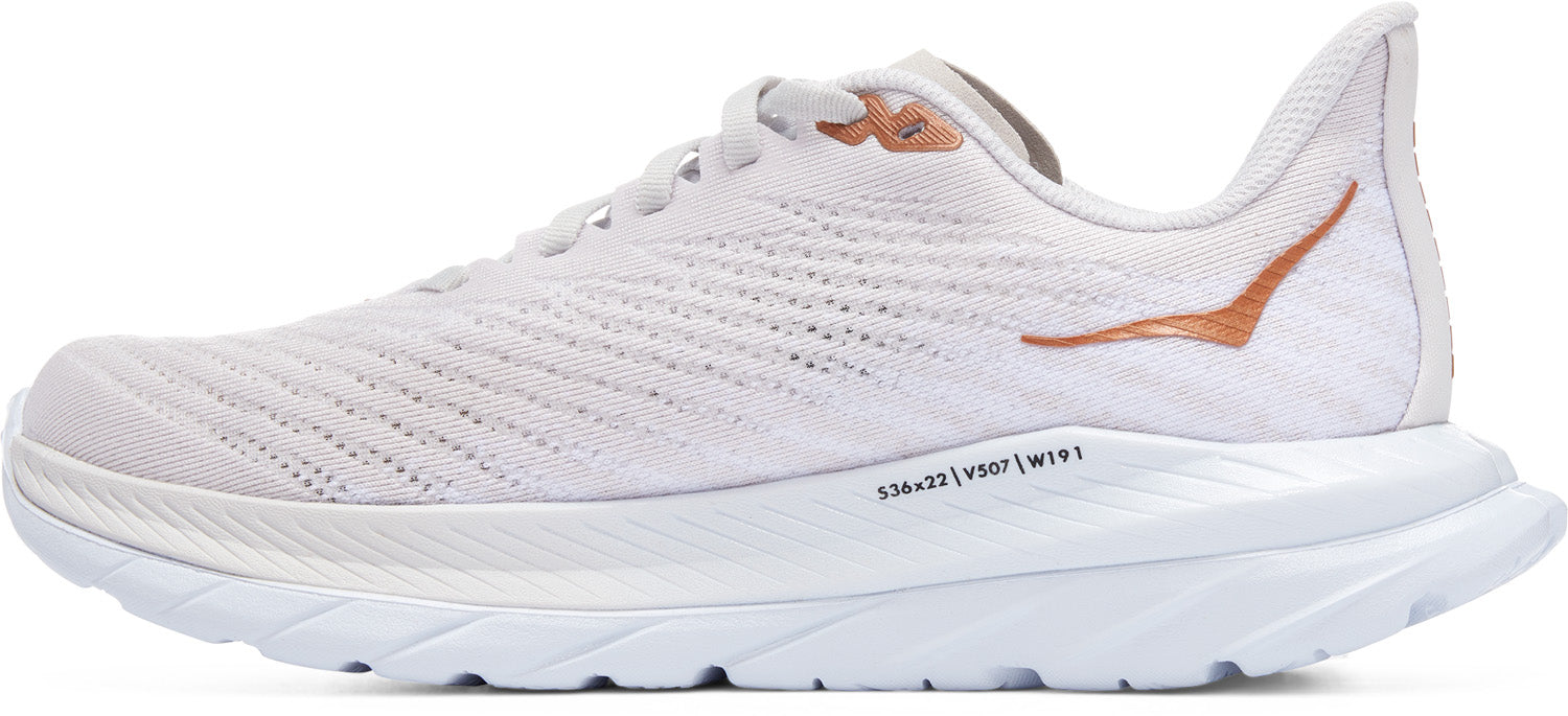 Pronatie: NeutraalGewicht: 192 gramDrop: 5 mmDemping: gemiddeldDe HOKA Mach 5 is een neutrale hardloopschoen, gebouwd voor prestaties en klaar om te racen. Deze nieuwe snelle schoen wordt ook wel de Carbon X genoemd zonder carbonplaat en mét zachte landing. Deze veelzijdige lichtgewicht schoen is ideaal voor snelle rondjes op de weg, maar ook voor vlotte intervaltrainingen en wedstrijden. Ga met de Mach 5 voor maximale prestaties. De snelle schoen heeft een geheel nieuw bovenwerk, waarbij de top 100% vegan is en bestaat uit een enkellaags Jacquard Mesh materiaal. De platte tong constructie en vernieuwde hielkap zorgen voor de perfecte pasvorm rondom de voet. De tussenzool is volledig vernieuwd van ‘Profly’ naar ‘Profly +’, wat betekent dat de Mach 5 lichter en responsiever is dan zijn voorganger. Ervaar meer energieteruggave tijdens het hardlopen. De onderste laag van de tussenzool bevat een rubberen EVA-foam. Dit zorgt tijdens het hardlopen voor meer grip. De HOKA Mach 5 is een veelzijdige schoen, geschikt voor je je tempolopen, intervallopen én wedstrijden.