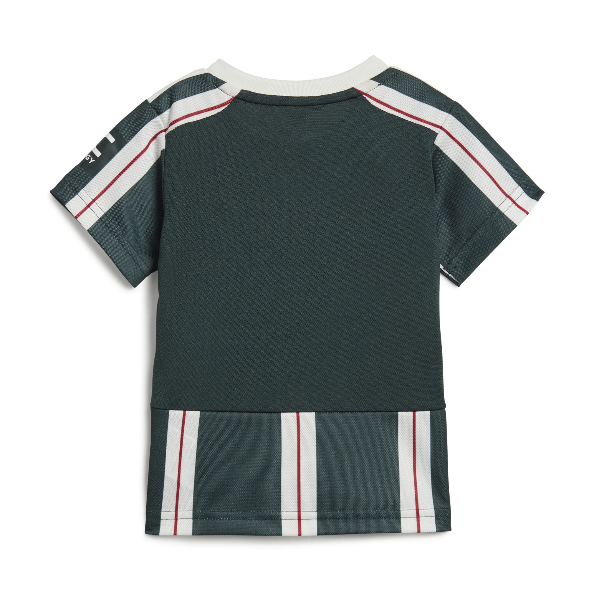 Dit adidas voetbaltenue voor peuters, een kleinere versie van wat de spelers van Manchester United dragen op het veld, schittert met een gestreept design dat is geïnspireerd op het uittenue uit het begin van de jaren 00. AEROREADY garandeert dat je kleintje droog blijft, en de geribbelde ronde hals en zachte stof bieden comfort. Het opgestreken clubembleem laat geen twijfel bestaan over aan welke kant jouw voetbalfanaatje staat.