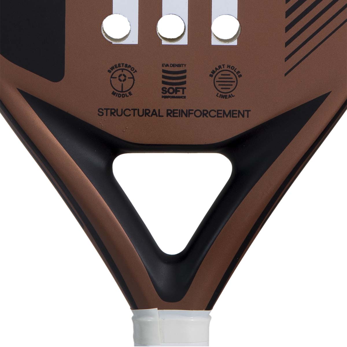 De nieuwe MATCH heeft alle eigenschappen voor een succesvol begin van het padelspel. Zijn grote slagoppervlak zal je helpen om al je slagen te raken. Het EVA SOFT PERFORMANCE rubber in combinatie met het fiberglas oppervlak biedt de beste combinatie voor een geweldige baluitslag en het best mogelijke comfort bij elk schot. Het ontwerp van de rackets, met het gewicht iets naar boven gericht, helpt om een toename in kracht te bereiken, zodat je vanaf het allereerste moment kunt genieten van je aanvallende slagen. Het GLASS FIBER oppervlak biedt een geweldige baluitslag en een zeer aangenaam gevoel van comfort. Het bevat STRUCTURELE REINFORCEMENT-technologie, zodat hoe hard je ook speelt, je racket altijd alle intensiteit van je spel zal ondersteunen.