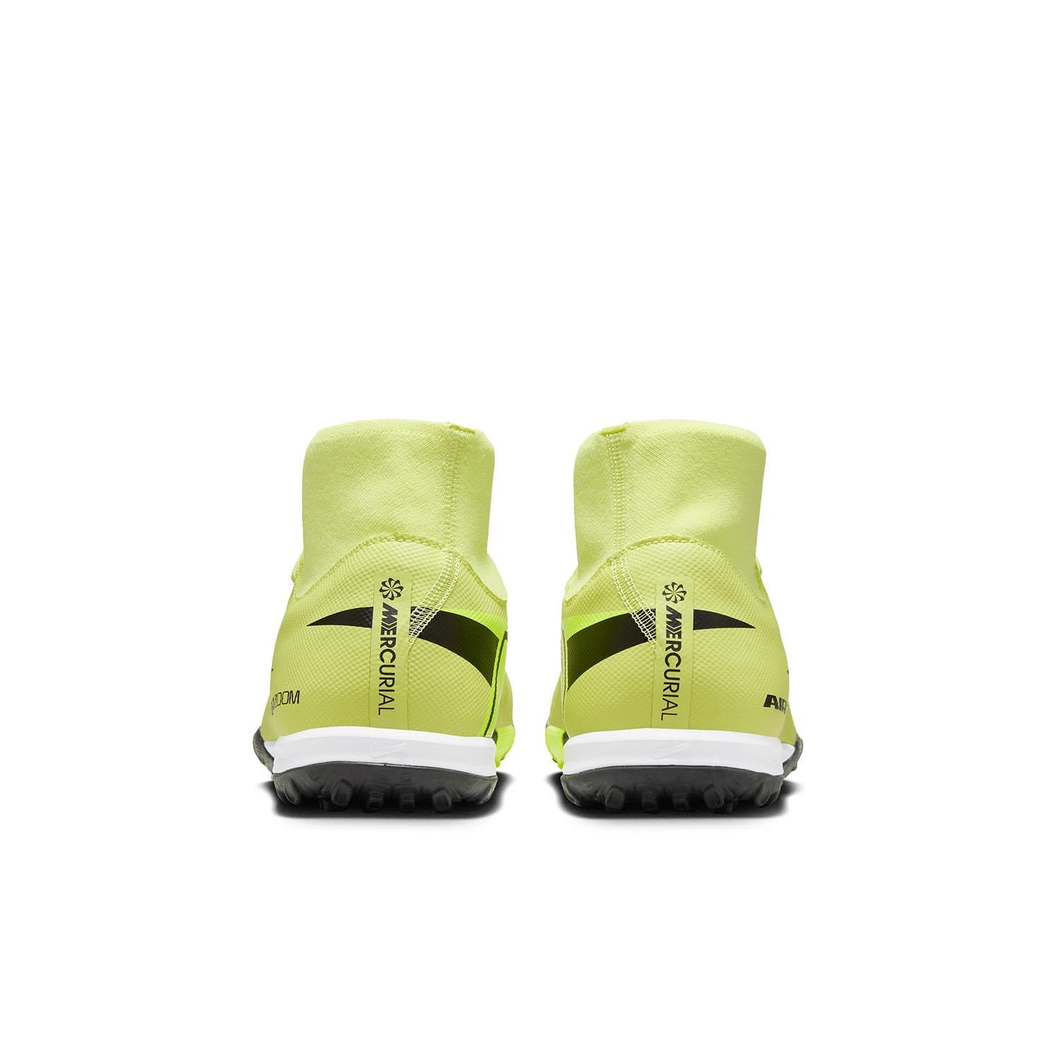 Nike Mercurial Superfly 10 Academy High-top voetbalschoen (turf) Wil je jouw snelheid naar een hoger niveau tillen? We hebben deze Academy schoenen gemaakt met een verbeterde Air Zoom unit in de hak. Het geeft je het voortstuwende gevoel dat nodig is om door de achterhoede heen te breken. Het resultaat is de meest responsieve Mercurial die we ooit hebben gemaakt, zodat je de hele wedstrijd het tempo kunt bepalen. Beter balgevoel Het bovenwerk is gemaakt van NikeSkin met ingebedde v-opdrukken, wat zorgt voor betere balcontrole en je echt het gevoel geeft dat je op blote voeten voetbalt. Grip voor snelle acties De rubberen buitenzool zorgt voor grip op turfvelden. Zit altijd goed We hebben de elastische mesh van de vorige generatie vernieuwd tot een aanpasbaar knit materiaal dat flexibiliteit en ondersteuning biedt en je dichter bij de bal brengt. Een Dynamic Fit kraag omwikkelt je enkel met zacht elastisch materiaal voor een stevig gevoel. More Details
