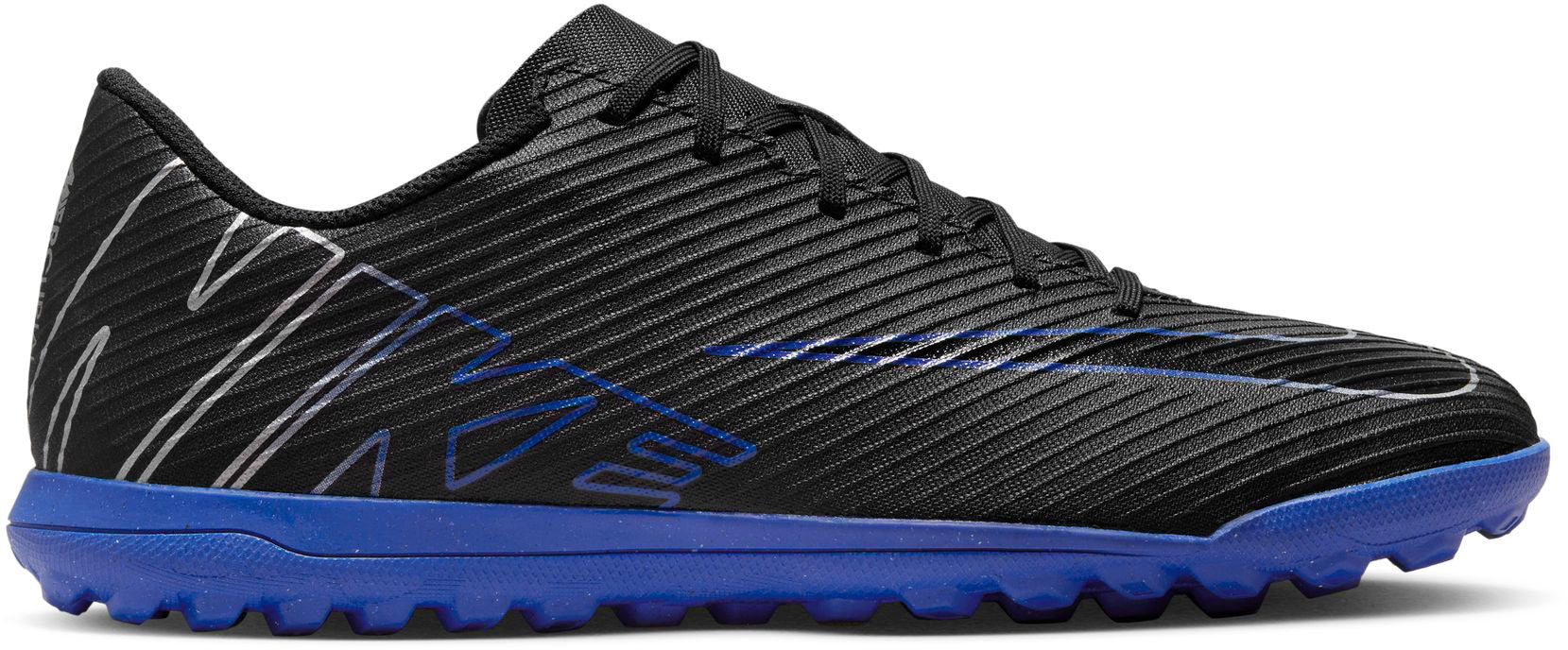 VOEL JE SNEL. SPEEL SNEL. Als het er echt op aankomt, ben jij het soort speler dat de uitdaging aan kan gaan op een manier dat verdedigers op het veld en de toeschouwers op de tribune je alleen nog maar kunnen nastaren. Deze schoenen zijn gemaakt voor iedereen die er vol voor gaat. Ze hebben een spookachtig gevoel als je ze aantrekt en je kunt ermee op supersonische snelheid spelen, en ook het publiek bekoren met een opvallende look. Naadloze pasvorm De comfortabele voering wikkelt zich om je voet en voelt natuurlijk en aansluitend aan. Uitzonderlijk balgevoel Het voorgevormde, synthetische bovenwerk heeft een patroon met textuur aan de bovenkant voor betere balcontrole bij het dribbelen op hoge snelheid. Klaar voor het veld Rubberen zolen met noppen, ontworpen voor kortere, minder realistische kunstgrasoppervlakken, zoals astroturf over beton en veel zaalvoetbalvloeren.