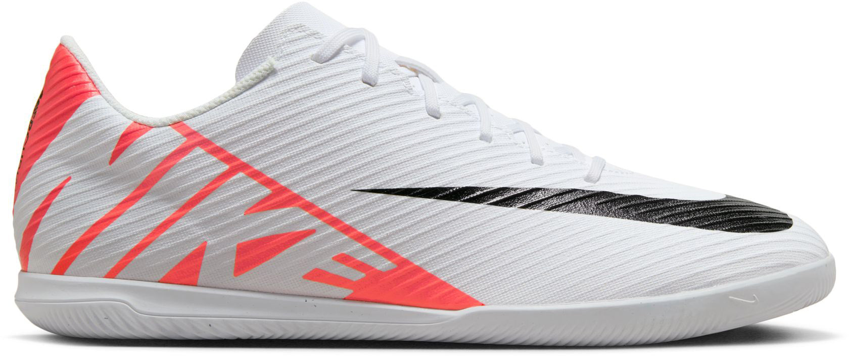 VOEL JE SNEL. SPEEL SNEL.Als het er echt op aankomt, ben jij het soort speler dat de uitdaging aan kan gaan op een manier dat verdedigers op het veld en de toeschouwers op de tribune je alleen nog maar kunnen nastaren. Deze schoenen zijn gemaakt voor iedereen die er vol voor gaat. Ze hebben een spookachtig gevoel als je ze aantrekt en je kunt ermee op supersonische snelheid spelen, en ook het publiek bekoren met een opvallende look.Naadloze pasvormDe comfortabele voering wikkelt zich om je voet en voelt natuurlijk en aansluitend aanUitzonderlijk balgevoelHet voorgevormde, synthetische bovenwerk heeft een patroon met textuur aan de bovenkant voor betere balcontrole bij het dribbelen op hoge snelheidKlaar voor het veldNiet-afgevende rubberen zolen met grippatroon, ontworpen voor gymzaalvloeren van hout of vinyl, of om op straat en op kleinere veldjes te spelen.