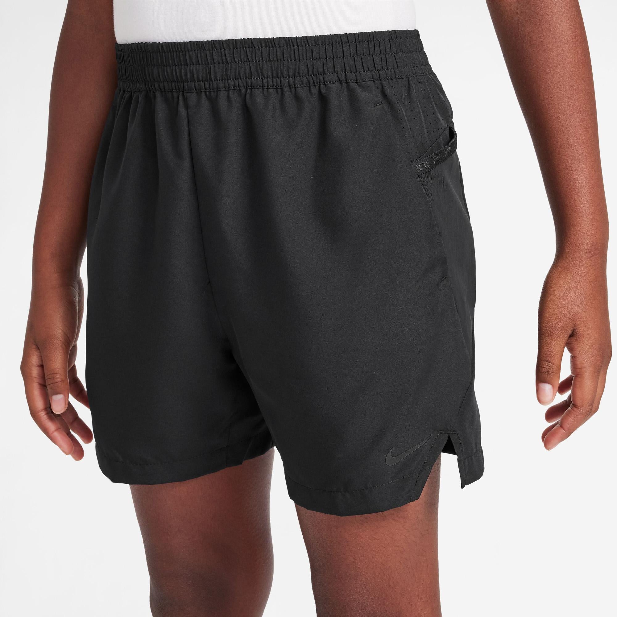 Blijf koel en houd je essentials bij de hand met behulp van deze lichtgewicht geweven shorts. Naast de verschillende zakopties, gebruiken ze onze zweetafvoerende Dri-FIT-technologie om je droog te houden terwijl je oefent en speelt. Nike Dri-FIT-technologie voert zweet weg van je huid voor snellere verdamping, waardoor je droog en comfortabel blijft.<br />Elastische tailleband met trekkoord helpt je om de perfecte pasvorm te kiezen. Zijzakken in combinatie met twee drop-in mesh-zakken om je meerdere opbergmogelijkheden te bieden.