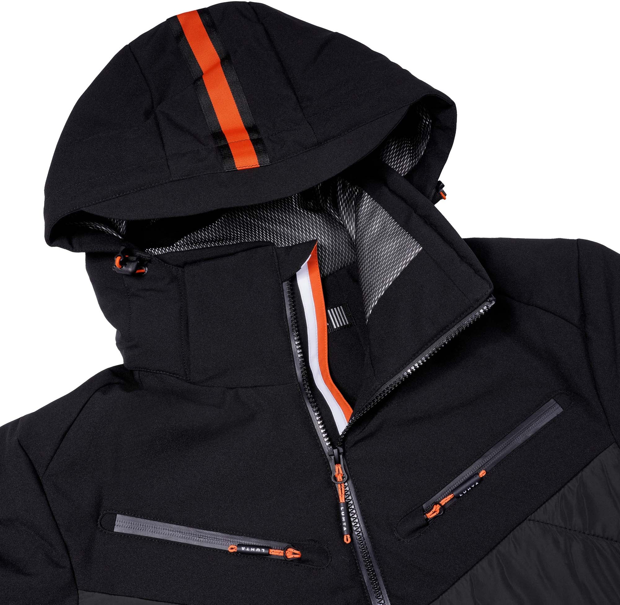Luhta jas voor heren. Gelede ellebogen. Comfortabele binnenkraag. Afneembare en verstelbare capuchon. Verstelbare manchetten. Elastische binnenmanchetten met duimgaten. Twee voorzakken met waterafstotende ritssluitingen. Twee borstzakken met waterafstotende ritssluitingen. Interne zak. Zak voor skipas op de mouw. Functionele zakken. Waterafstotende ritssluiting aan de voorkant. Verstelbare zoom. Langere en beschermende achterzoom. Sneeuwvanger met antislip siliconenband. Logo-label. Oortelefoonlus. Waterkolom 10.000 mm. Ademend vermogen 5.000 g\m2\24u. Dit product bevat gerecyclede materialen, waardoor de impact op ons milieu kleiner is. Het product is waterafstotend gemaakt zonder PFC's. Het oppervlak van de stof is behandeld met een waterafstotende afwerking. Het 2-way stretchmateriaal vergroot de bewegingsvrijheid. Dit winddichte materiaal biedt optimale windbescherming en warmte. Deze A.W.S. Het EXTREME-product voldoet aan de behoeften van actieve buitenmensen, zelfs onder extreme omstandigheden. Structurele details en beschermende materialen maken het product functioneel in elke situatie, ongeacht het weer. Warme isolatie.