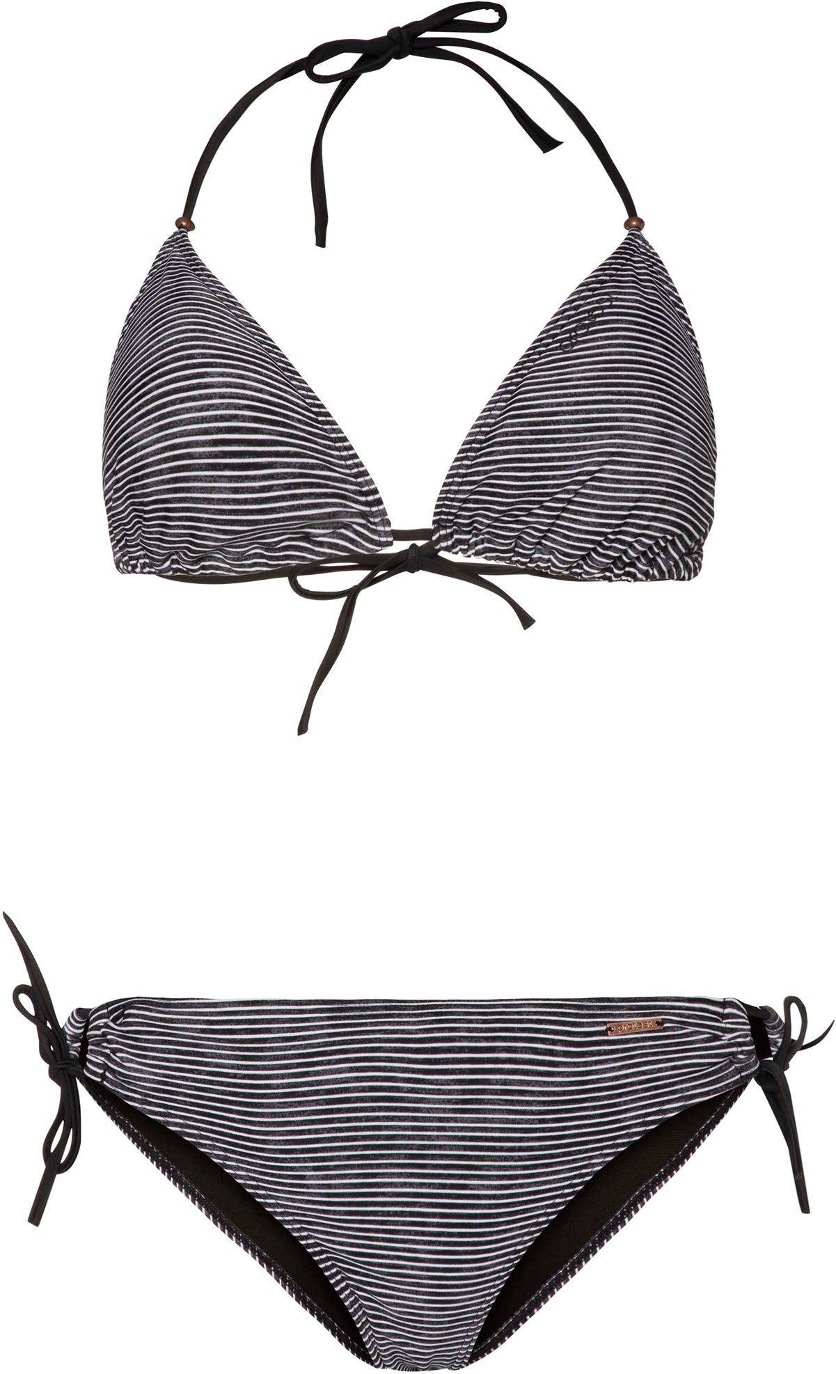 Ontdek de PRTMYSTICAL triangel bikini van Protest. Deze eenvoudige en mooie regular fit bikini is bedrukt met een gestreept patroon. De sneldrogende, uitneembare foam cups bieden extra ondersteuning wanneer dat nodig is. De bandjes van de bikinitop zijn versierd met kralen. De stof is PFC-vrij om het gebruik van deze chemische stof te verminderen en daarmee de schade aan het milieu te beperken. De PRTMYSTICAL van Protest is een musthave voor de zomer.