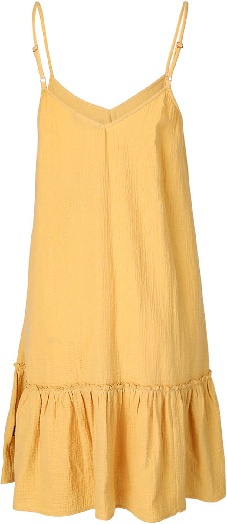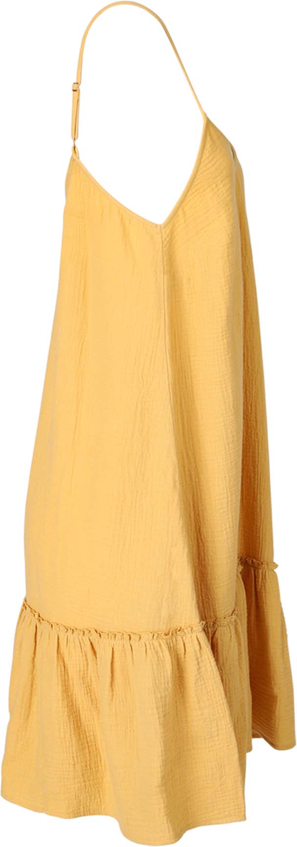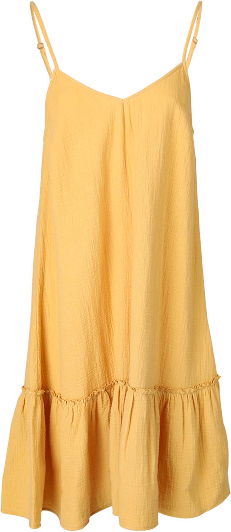 Het los vallende zomerjurkje heeft verstelbare bandjes en is gemaakt van wafelkatoen.
