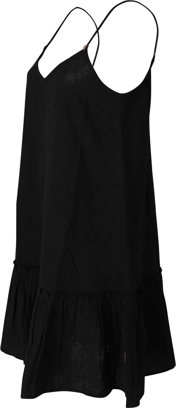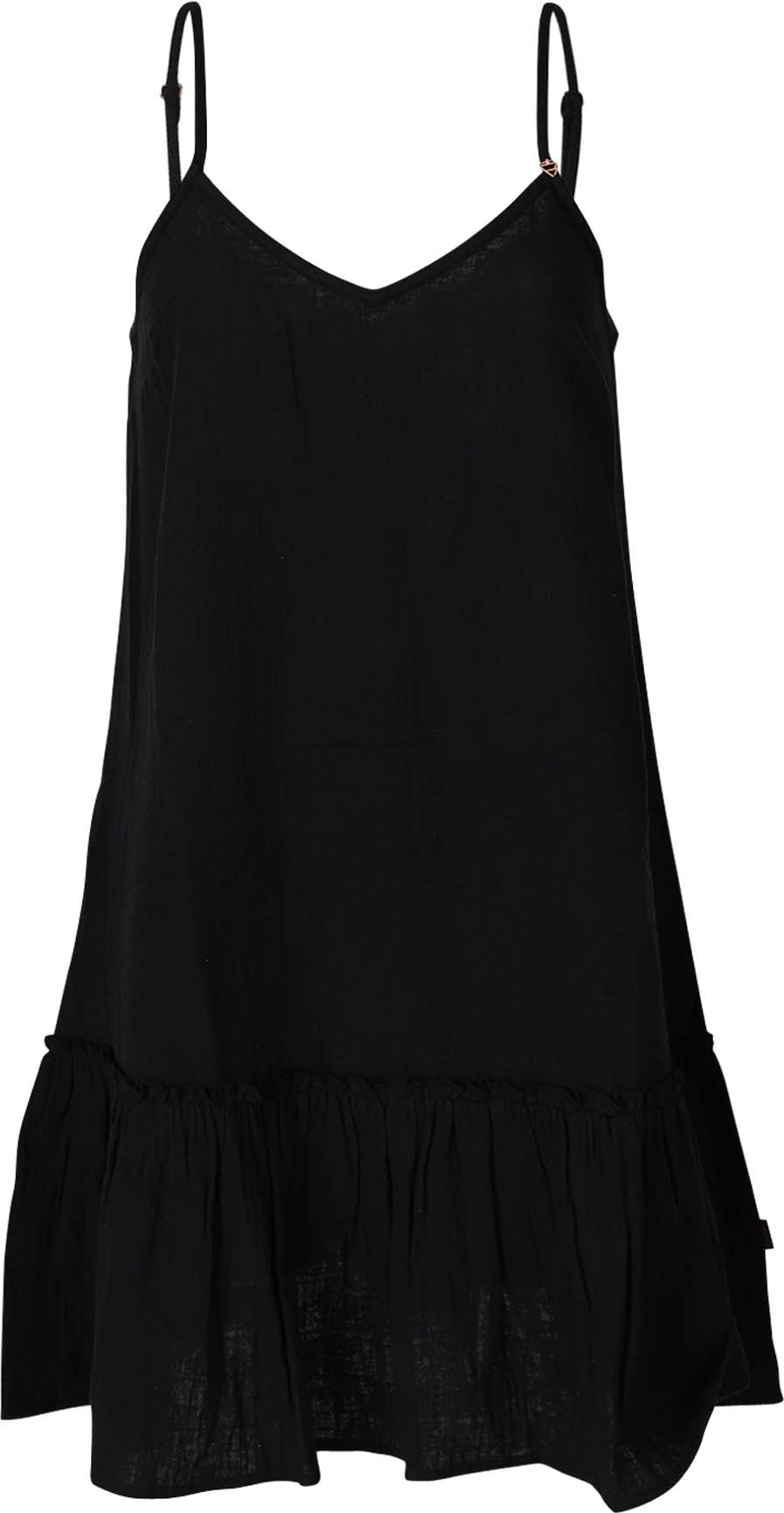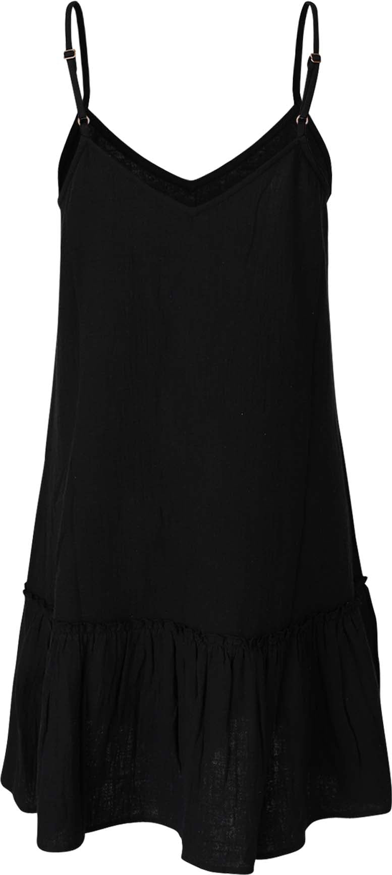 Het los vallende zomerjurkje heeft verstelbare bandjes en is gemaakt van wafelkatoen.