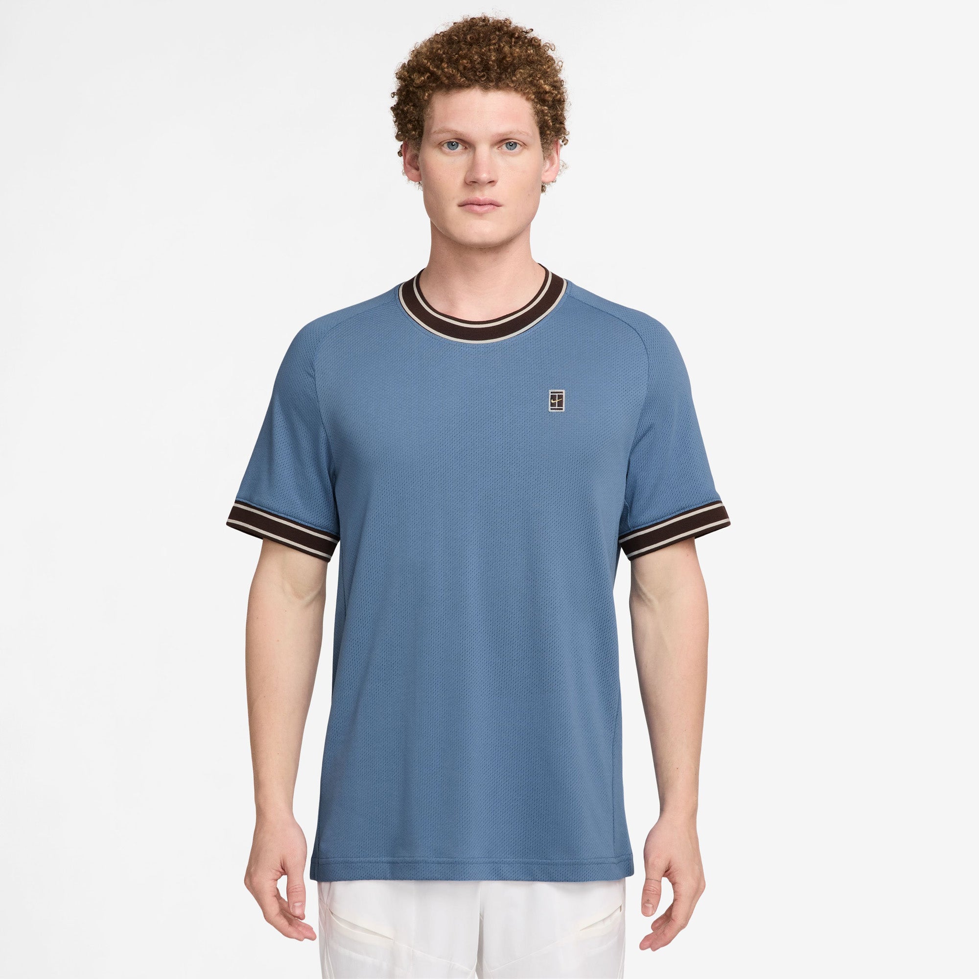 NikeCourt Heritage Tennistop voor heren met korte mouwen Wees altijd klaar om de baan op te gaan met de ruimvallende NikeCourt Heritage tennistop. Blijf koel tijdens trainingen en wedstrijden met licht, ventilerend materiaal dat zweet wegvoert. Nike Dri-FIT technologie voert zweet weg van je huid voor snellere verdamping, zodat je droog en comfortabel blijft. Een combinatie van katoen en polyester zorgt voor ventilatie en een zacht gevoel. NikeCourt graphic op de borst verwijst naar de tennisgeschiedenis van Nike.