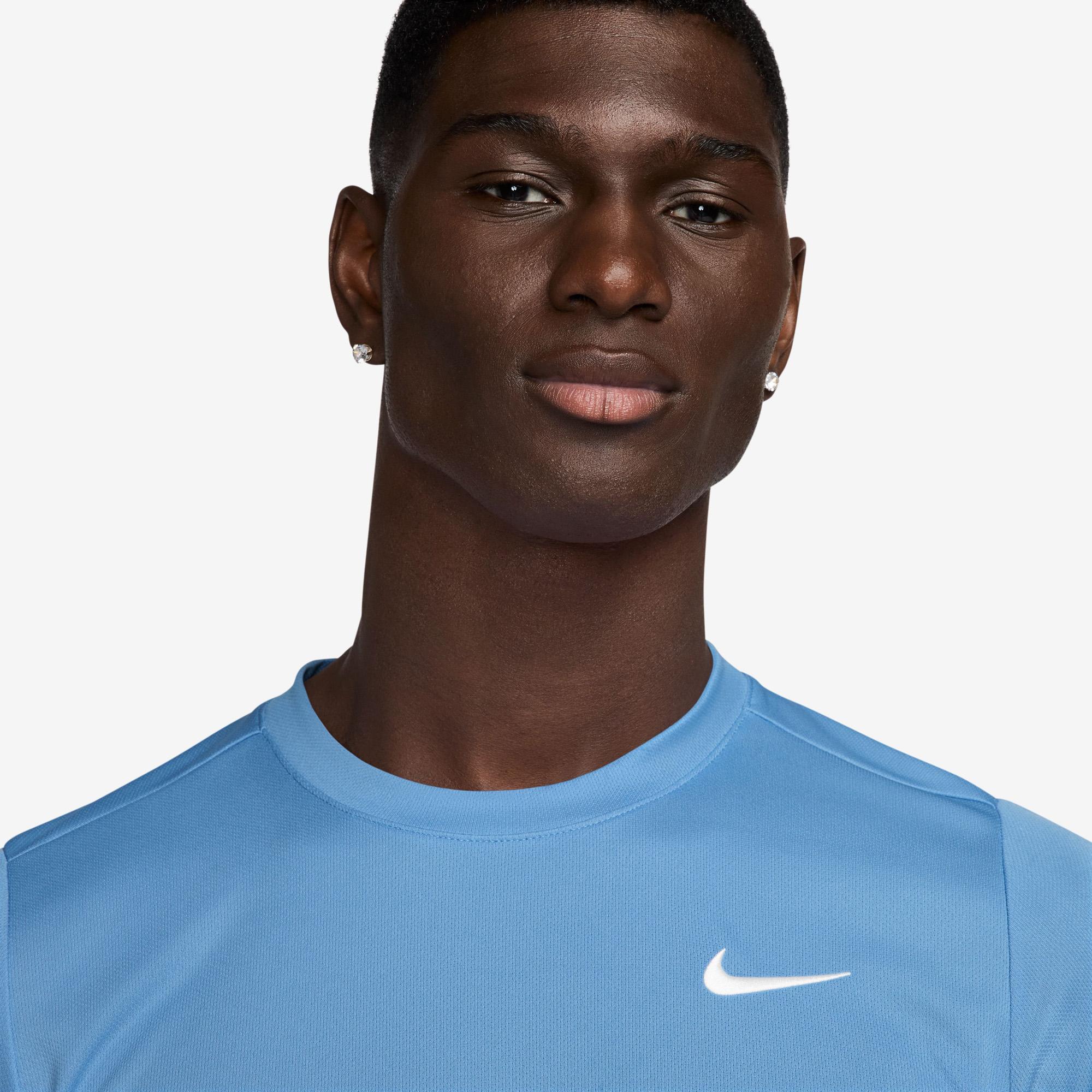 NikeCourt Victory Dri-FIT tennistop voor heren Beweeg vrij tijdens trainingen en wedstrijdjes in de NikeCourt Victory top met aansluitende pasvorm. Deze top voor fanatieke spelers is ventilerend, elastisch en zweetafvoerend zodat jij je kunt focussen op je performance. De schoudernaden op de achterkant zijn zo geplaatst dat je meer bewegingsvrijheid hebt tijdens je rotatie en drive. Nike Dri-FIT technologie voert zweet weg van je huid voor snellere verdamping, zodat je droog en comfortabel blijft. Zachte knit is licht en ventilerend. Offset naden aan de achterkant zorgen voor bewegingsvrijheid tijdens je slag. Inzetstukken in de zijnaden zorgen voor extra stretch en bewegingsvrijheid.