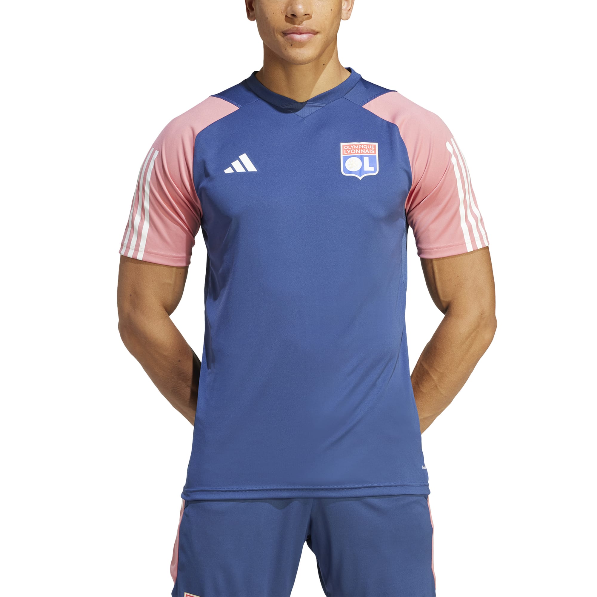 Trek het nauwsluitende shirt aan waarin de spelers van Olympique Lyonnais trainen. Dit adidas sportshirt, met vochtabsorberend AEROREADY aan alle kanten en mesh in de oksels, is ontworpen voor sporters die ademend, droog comfort willen tijdens workouts. Door de kleuren en het embleem weet iedereen wat jouw favoriete voetbalclub is terwijl jij je in het zweet werkt.