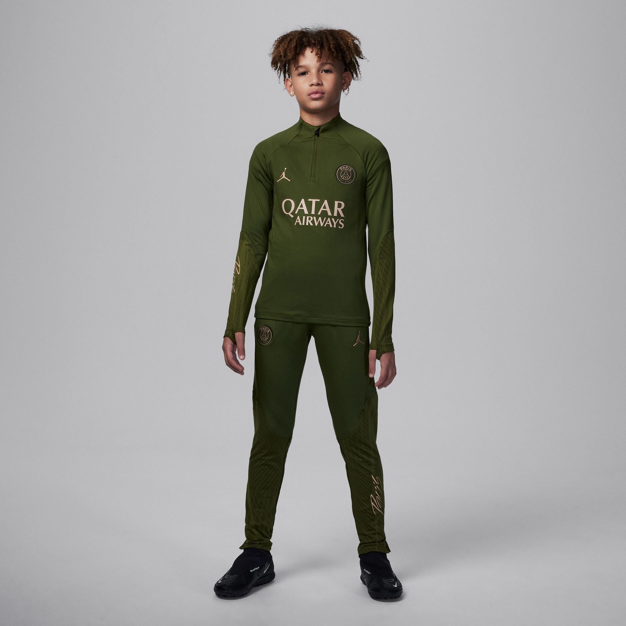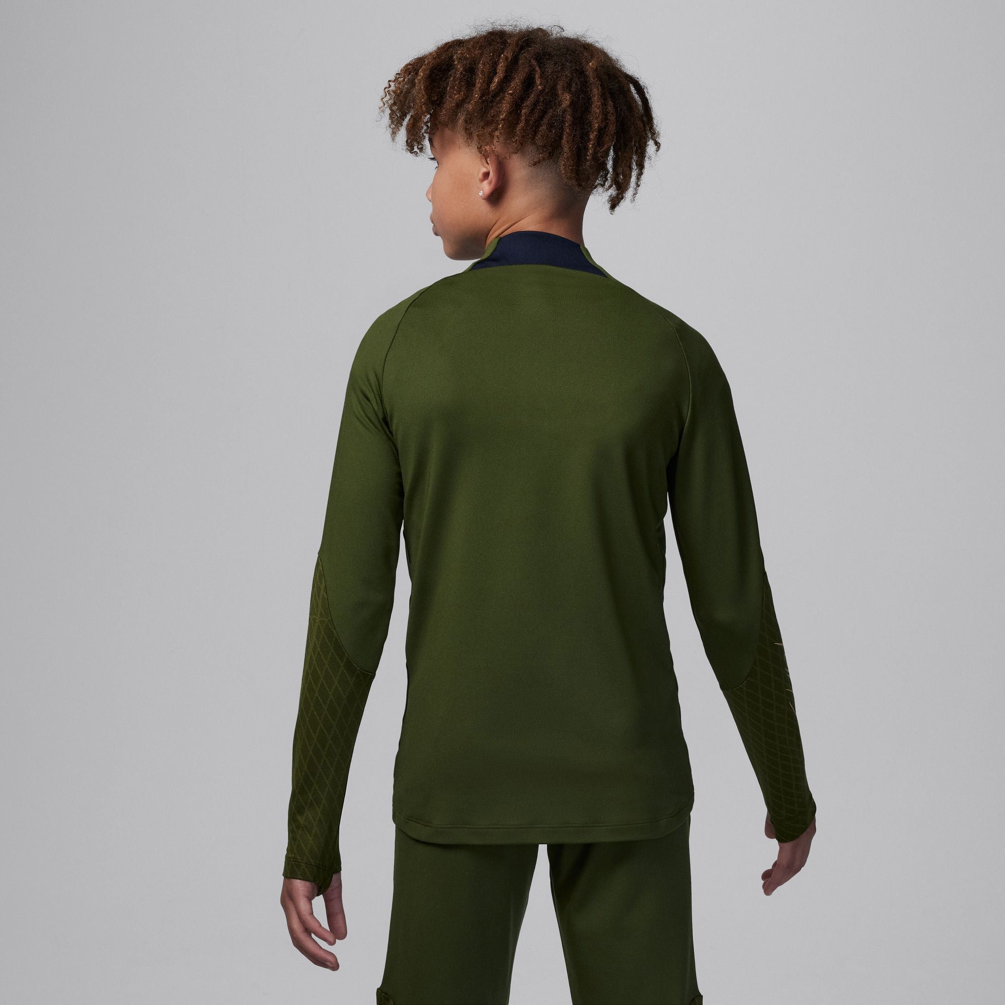 Paris Saint-Germain Strike Fourth Big Kids' Jordan Dri-FIT Soccer Drill Top With design details specifically tailored for soccer’s rising stars, a slim, streamlined fit ensures that nothing comes between you and the ball. Sweat-wicking technology helps keep you cool and composed while you fine-tune your skills. Nike Dri-FIT technology moves sweat away from your skin for quicker evaporation, helping you stay dry and comfortable. Thumbholes let you extend your coverage and help hold the sleeves in place while you move.