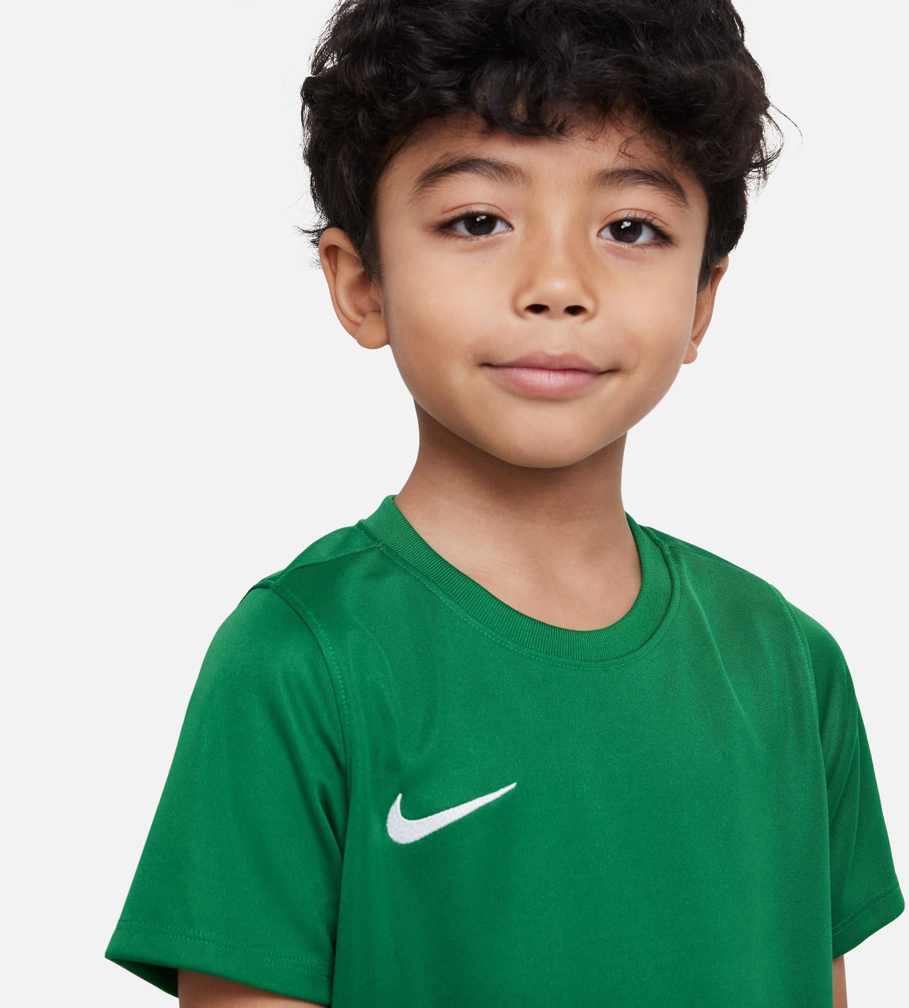 SPEL IN COMFORT.De Nike Dri-Fit Park Kit is gemaakt van zweetafvoerende stof die ervoor zorgt dat de kleintjes droog blijven en zich kunnen concentreren op het spel. De jersey, shorts en sokken zijn ontworpen voor comfort.