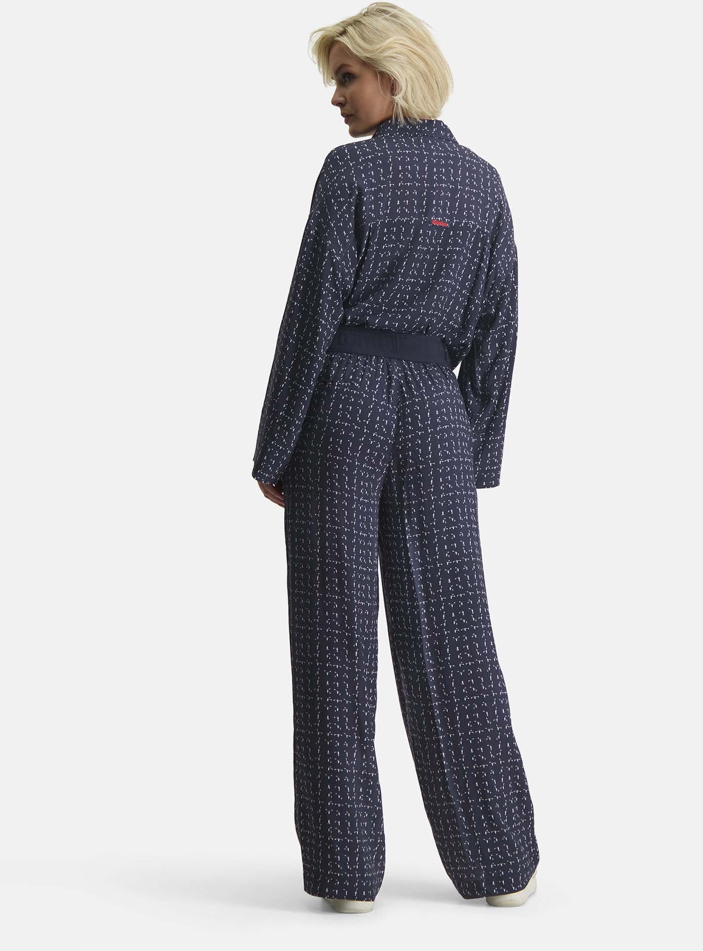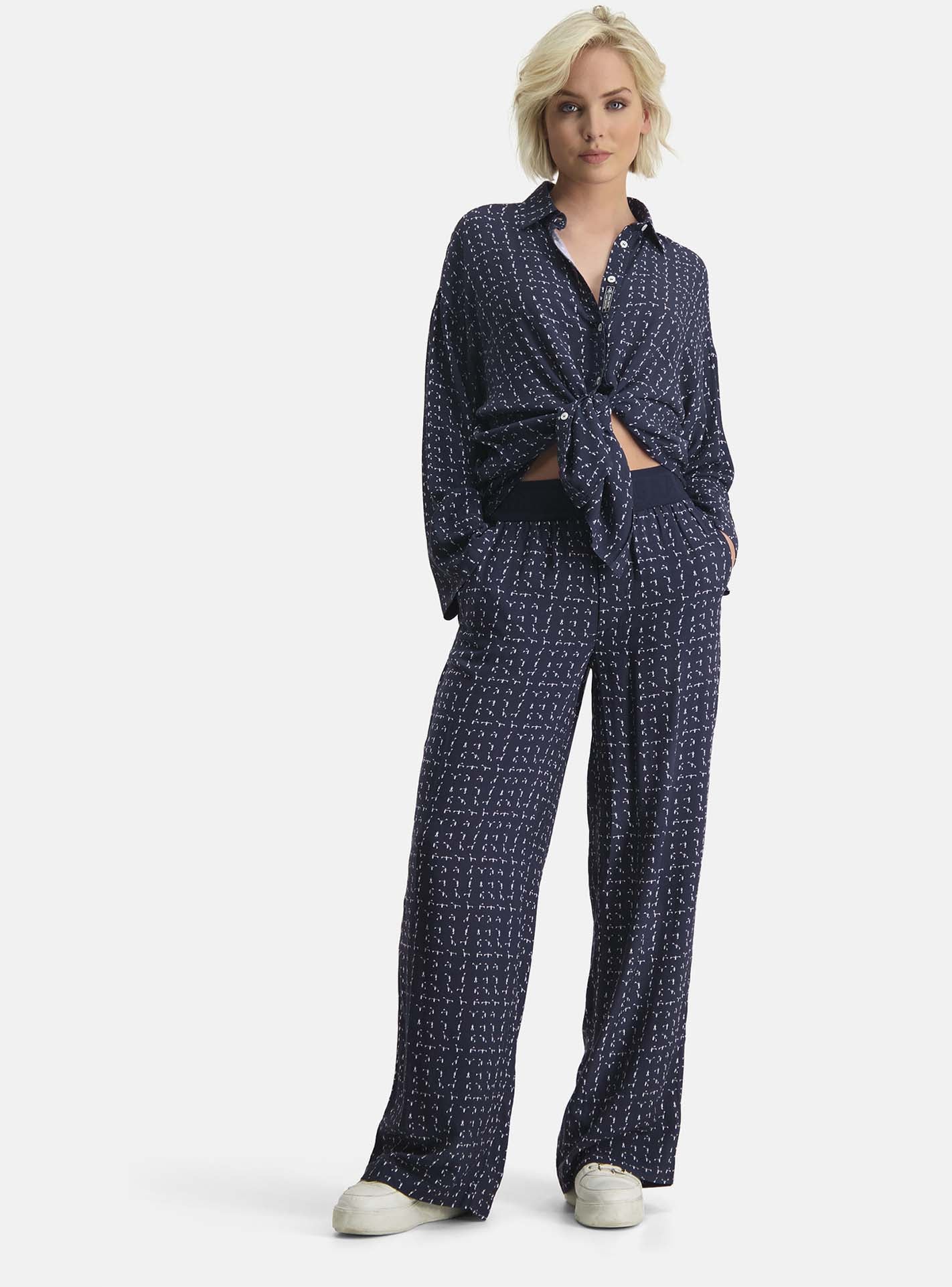 De lange en flowy Portia Flag broek heeft een allover nautische print. Door het luchtige design is de broek perfect voor als je je wilt bedekken maar toch koel en geventileerd wilt blijven.
