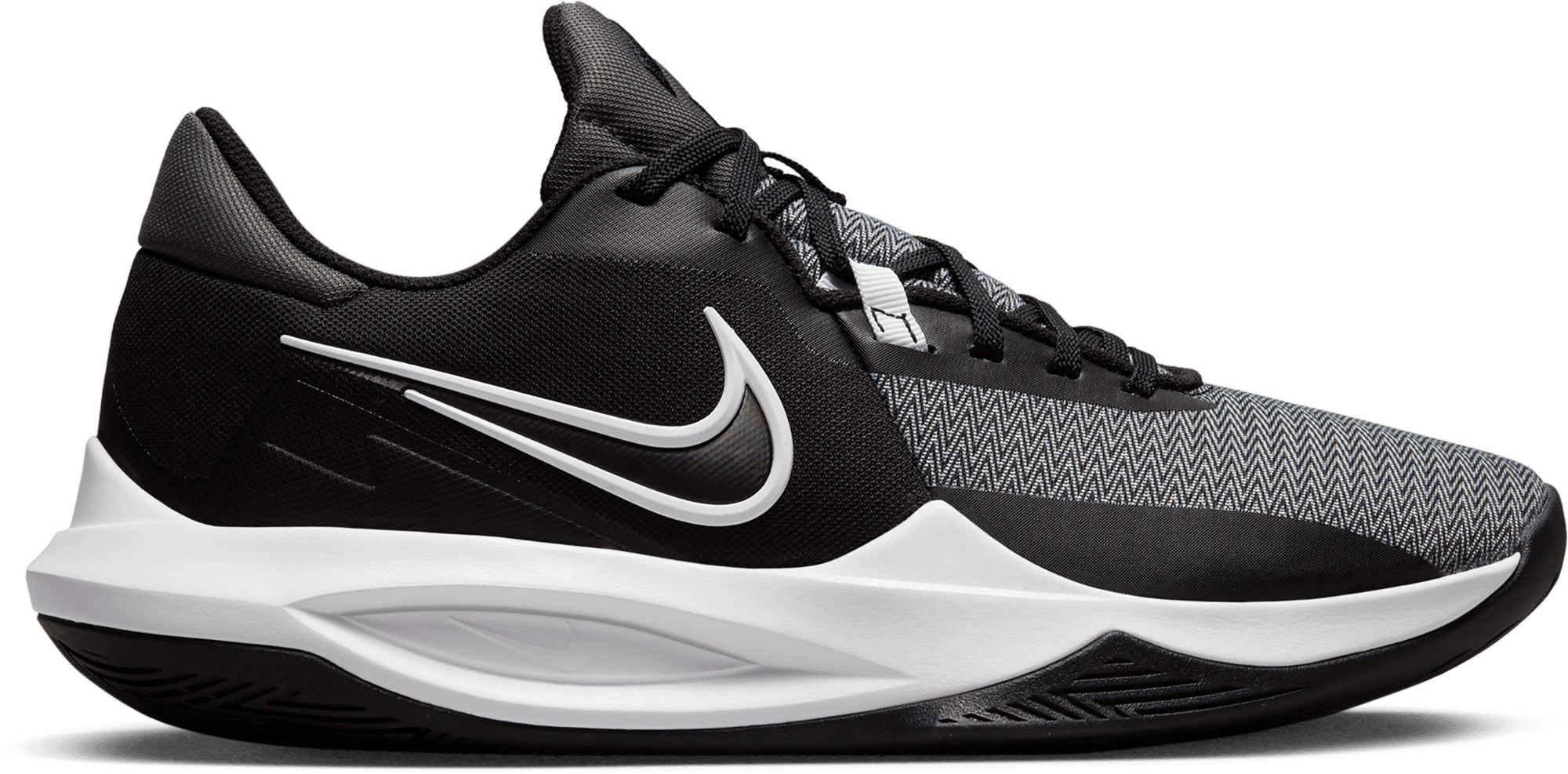 DE KWINTESSENS VAN SNEL. Creëer ruimte, stop op een dubbeltje, schiet uit de dribbel - doe het allemaal met de Nike Precision 6. Hij is ontworpen om snelle spelers in staat te stellen snelheden te wisselen en van richting te veranderen, terwijl ze de controle behouden. Van de pluche kraag en tong tot de aangepaste visgraat tractie, de wendbare low-top laat je het beste uit je vaardigheden halen terwijl je het tempo van het spel opvoert.