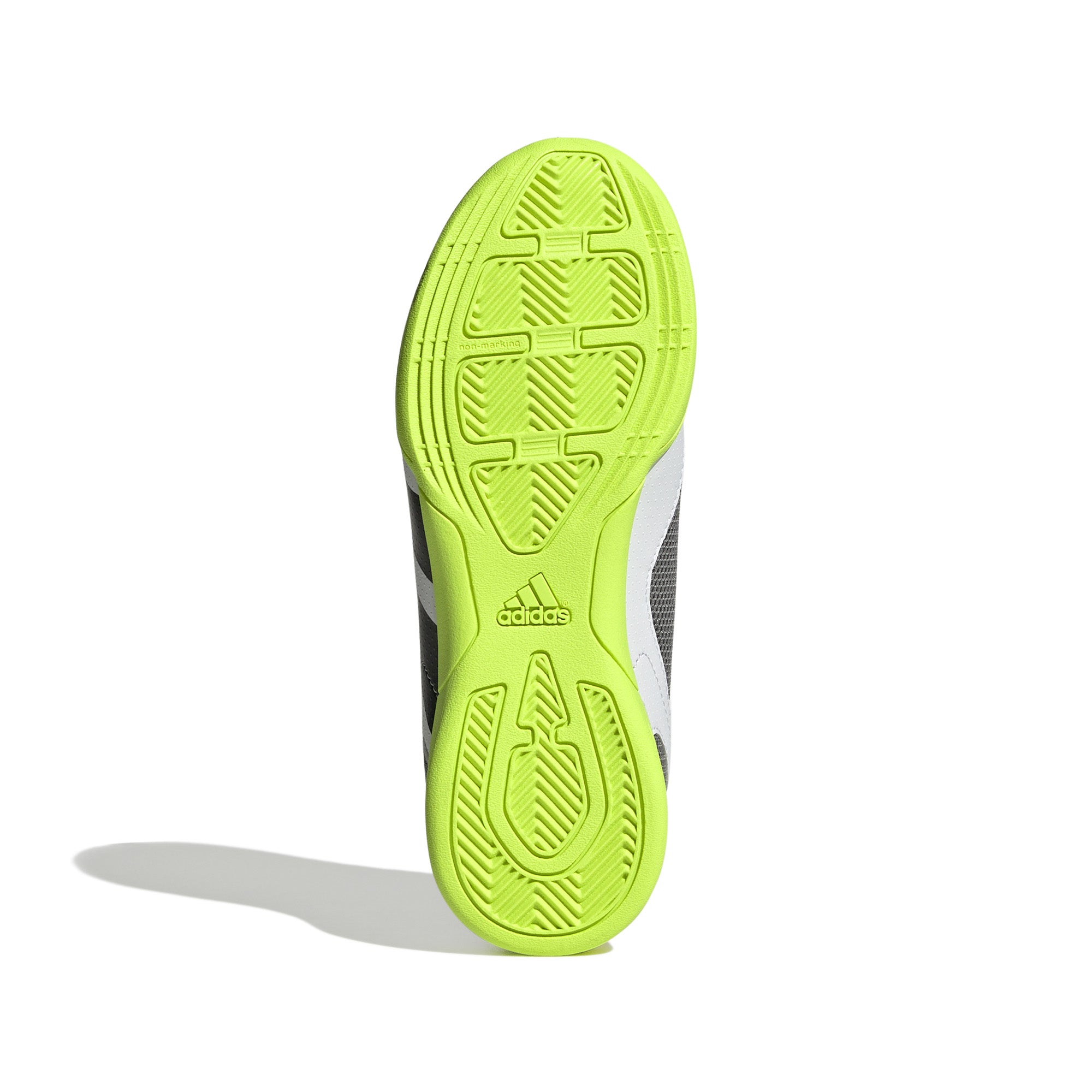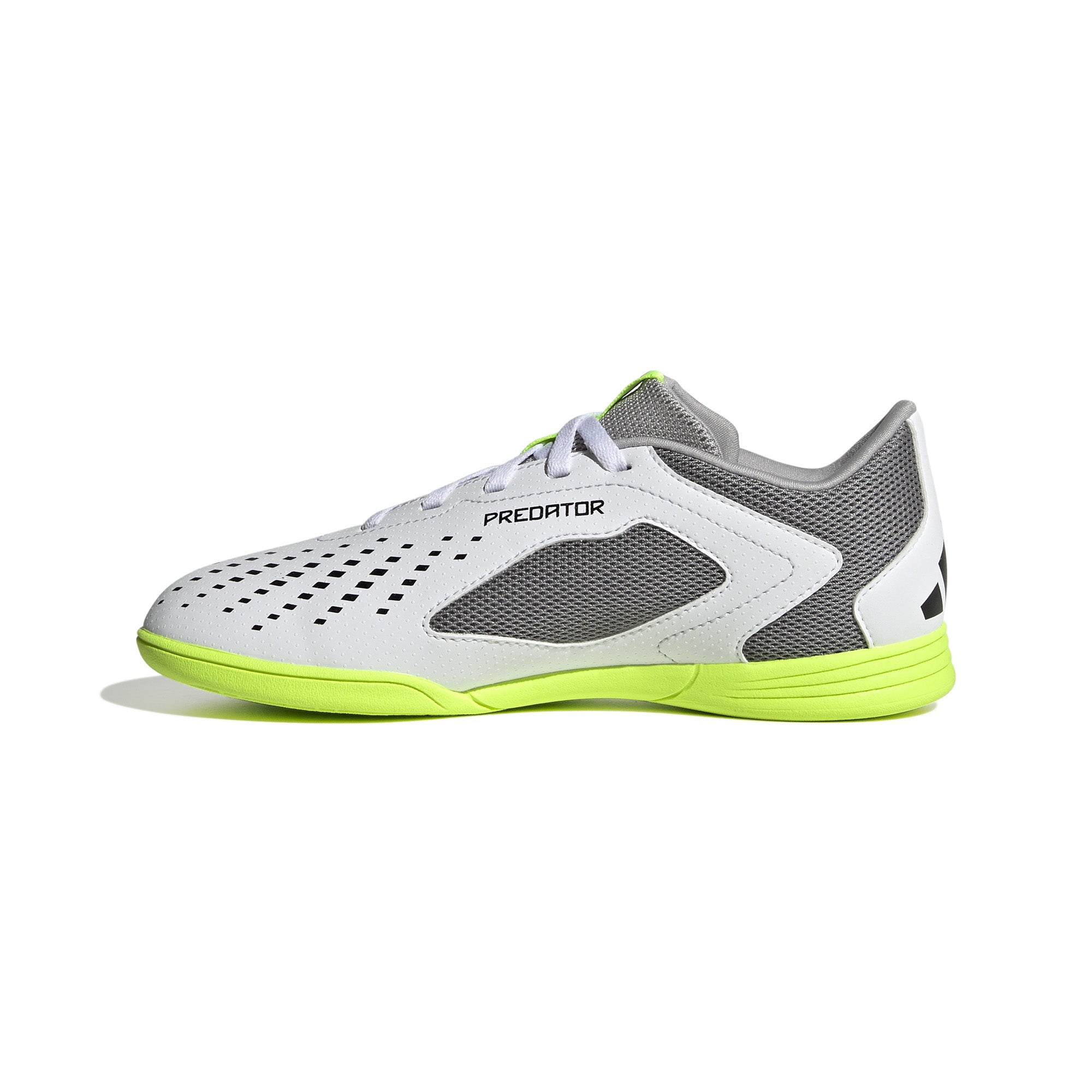In de kruising. Linksonder. Maakt niet uit. De adidas Predator Accuracy is gemaakt om te scoren, dus je weet dat de bal het net zal vinden. Het plezier zit 'm in kiezen op welke manier. Deze junior voetbalschoen heeft een comfortabel synthetisch bovenwerk met een lichte textuur en een hielpand van mesh om je koel te houden tijdens snelle wedstrijden. De NON MARKING-loopzool is ontworpen om je controle te geven op vlakke zaalvloeren.