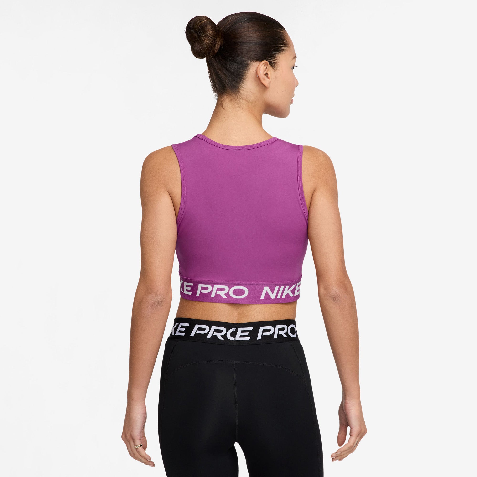 Nike Pro Cropped tanktop met Dri-FIT voor dames Werk je in het zweet in deze korte Nike Pro tanktop. Het gladde materiaal is licht en elastisch en droogt snel, zodat je er klaar voor bent als je work-out intensiever wordt. Met een aansluitende pasvorm en een zachte elastische band van jacquardmateriaal bij de zoom voel je je zelfverzekerd terwijl je je doelen verplettert. Net als een Pro Zelfverzekerde stijl past overal bij. Van leggings tot tops tot meer, Nike Pro is klaar om je garderobe aan te vullen met items waarmee je opvalt. Blijf droog Nike Dri-FIT technologie voert zweet weg van de huid voor snellere verdamping, zodat je droog en comfortabel blijft.