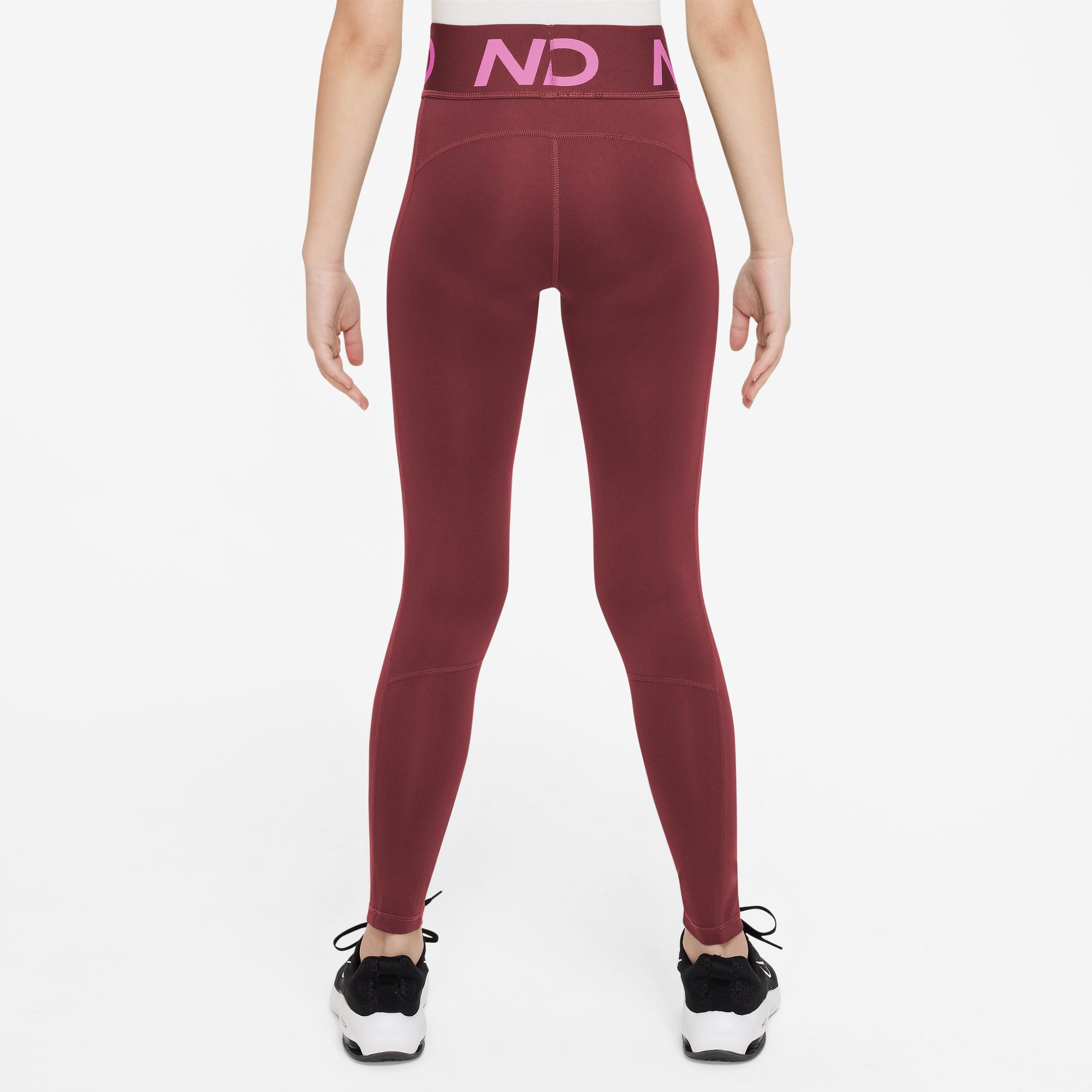 Nike Pro Dri-FIT legging voor meisjes Zoek een look die bij jou past en laat hem vervolgens zien met deze favoriet voor elke dag. Van hardloopoefeningen op de training tot rondrennen met vrienden na school, deze legging helpt je om je een professional te voelen. Ons vochtafvoerende materiaal zorgt ervoor dat zweet je niet tegenhoudt en geeft je het zelfvertrouwen om alles op alles te zetten.Doei, zweet.Nike Dri-FIT technologie voert zweet weg van je huid voor snellere verdamping, zodat je droog en comfortabel blijft. Mesh aan de onderkant van de achterkant van de pijpen zorgt voor extra ventilatieAansluitend en comfortabelSoepel, elastisch materiaal en een brede, elastische tailleband liggen plat tegen je huid en houden de legging op zijn plek als je beweegt. Bovendien is hij makkelijk onder shorts, rokjes of een tenue te dragen.