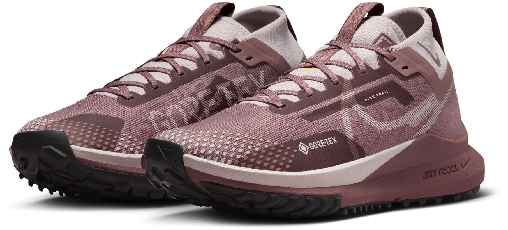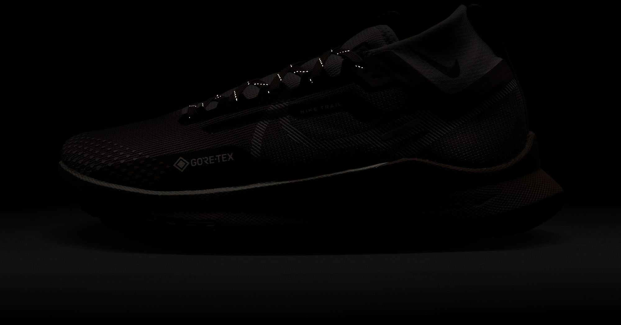 JE STOPT DE REGEN. Ga op pad als het regent zonder te stoppen met de Nike Pegasus Trail 4. Voel je zelfverzekerd in de meest onvoorspelbare weersomstandigheden dankzij waterdicht GORE-TEX dat je droog houdt, zodat je langer kunt hardlopen. Gemaakt voor momenten waarop je niet wilt terugkeren, wat er ook gebeurt. Houd de regen buiten De onzichtbare pasvorm van GORE-TEX in het bovenwerk biedt bescherming tegen regen zonder in te leveren op het comfortabele gevoel van de Peg Trail. Het flexibele, lichte design houdt je voeten droog tijdens het hardlopen op natte wegen. Wanneer rubber het pad op gaat Minder rubber op de buitenzool zorgt voor een soepele overgang van de weg naar het pad en behoudt de React-tussenzool over de hele lengte. De rubberen buitenzool wikkelt zich om de voorkant van de schoen voor extra bescherming en stevigheid. Het generatieve grippatroon wordt gecombineerd met mitton rubber voor extra grip op technische paden en een soepele loopervaring op de weg. Hey There, Gaiter Een nieuwe verhoging bij de enkel zorgt voor extra bescherming tegen water en puin op de weg. React foam houdt je comfortabel in beweging React foam in de volledige middenzool zorgt voor veerkrachtige responsiviteit en een soepele overgang.