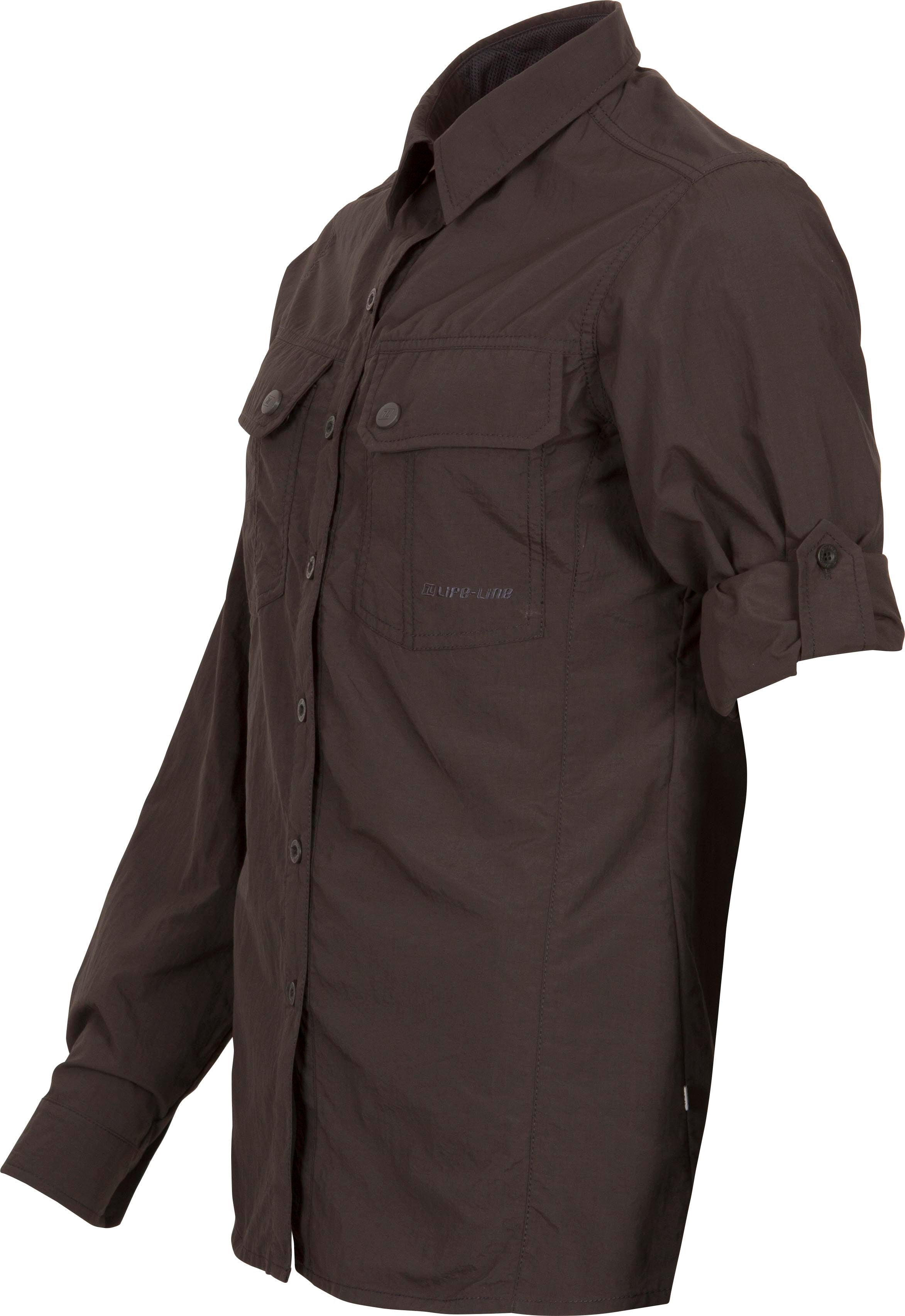 De licht getailleerde Samani outdoor blouse is een echte 'Must Have' voor de vrouwelijke outdoor liefhebber. De blouse is lichtgewicht, bijzonder snel droog en zeer compact op te vouwen, waardoor deze veelzijdige outdoor blouse eenvoudig in je rugzak is op te bergen. Voor voldoende ventilatie is de blouse voorzien van een mesh voering op de rug. Het overhemd beschikt over de HHL Vital Protection Technology. Een technologie die insecten (muggen, teken, etc.) op een afstand houdt door zijn insectwerende werking. Daarnaast biedt het een geweldige UV-bescherming (UPF50+) en beschermd de anti-micro de kleding tegen onaangename lichaamsgeuren, verkleuring en schimmelvorming.