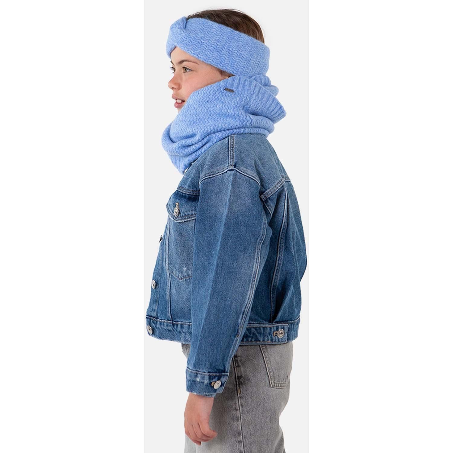Col shawl for girls - Soft and stretchy - Zigzag knit - Dimensions: 28 x 60 cm (height x width) - This product will pill gradually due to the characteristics of this yarn, it can be removed by hand or with a de-piller - Perfect to combine with the Shae Beanie, Shae Headband and Suzam Beanie Kids