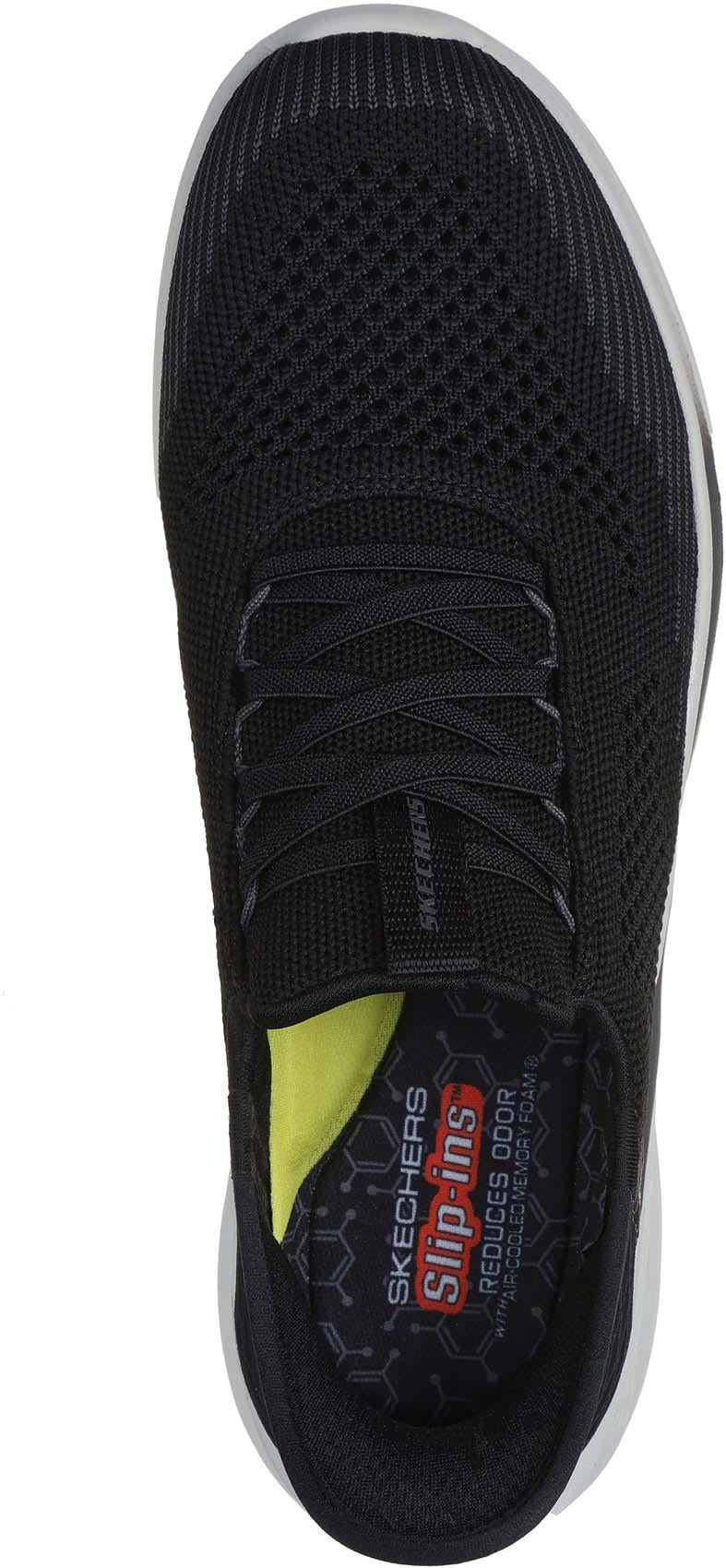 De Skechers Slip-ins® Relaxed Fit®: Slade - Quinto is de perfecte wandelschoen voor moeiteloos comfort en gemak. Dankzij de elastische veters en exclusieve Heel Pillow™ stap je eenvoudig in, zonder gedoe. Het ademende bovenwerk van technisch gebreid materiaal zorgt voor een flexibele en luchtige pasvorm, terwijl de Skechers Air-Cooled Memory Foam®-binnenzool met houtskool helpt om nare geurtjes te verminderen. Voor extra ondersteuning is de schoen uitgerust met de Skechers Goga Mat Arch™, waardoor je voeten de hele dag optimaal worden ondersteund.