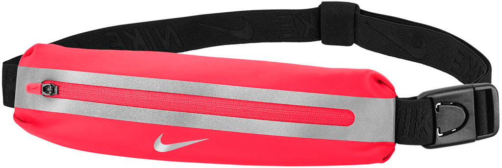De Nike Slim Waistpack 2.0 is een fijne hardloopheuptas met een verstelbare elastische riem. In het voorste vak met ritssluiting berg je gels, huissleutels, pasjes en andere persoonlijke bezittingen veilig op. Tijdens runs in de schemering of in het donker val je beter op door het reflecterende Nike Swoosh logo.