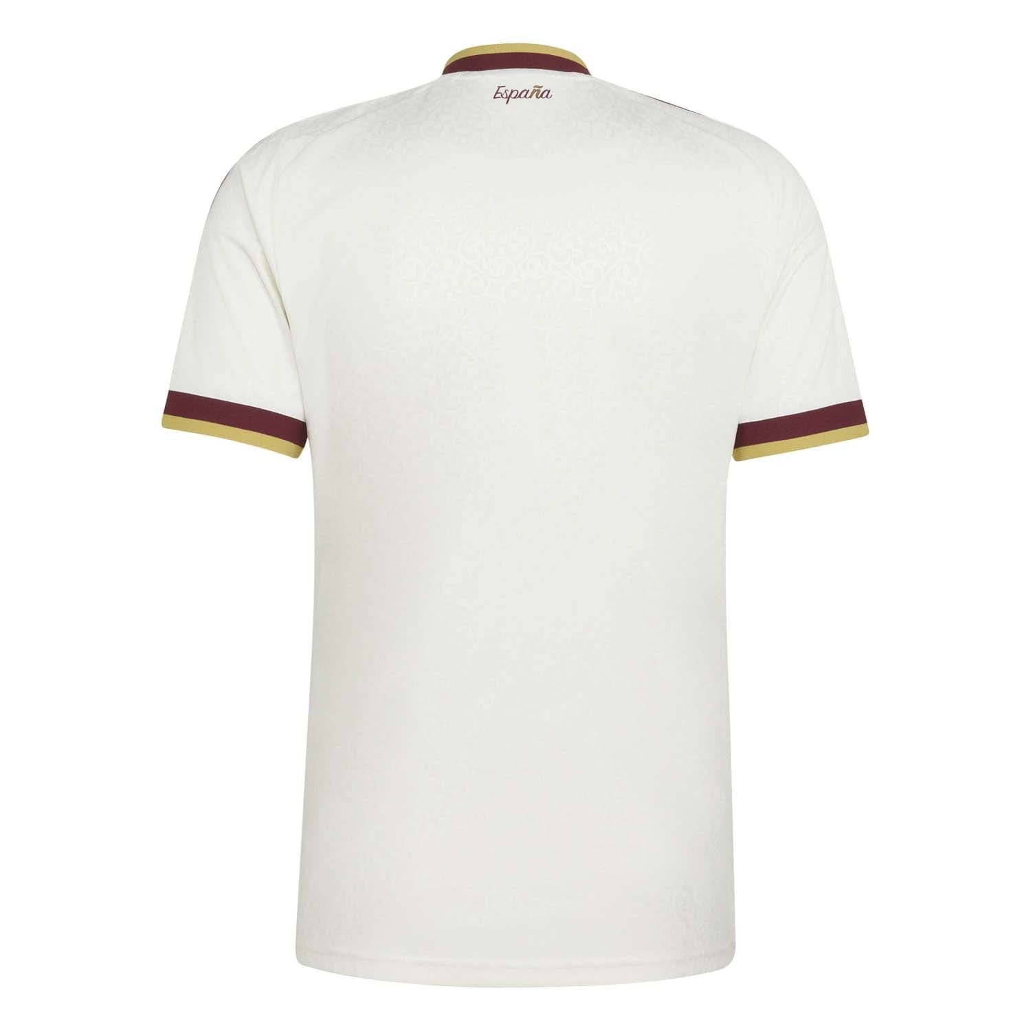 Dit adidas Spanje 26 uitshirt viert klassieke Spaanse literatuur en valt op met een complex patroon dat is geïnspireerd op oude manuscripten en verweerde boekpagina's.