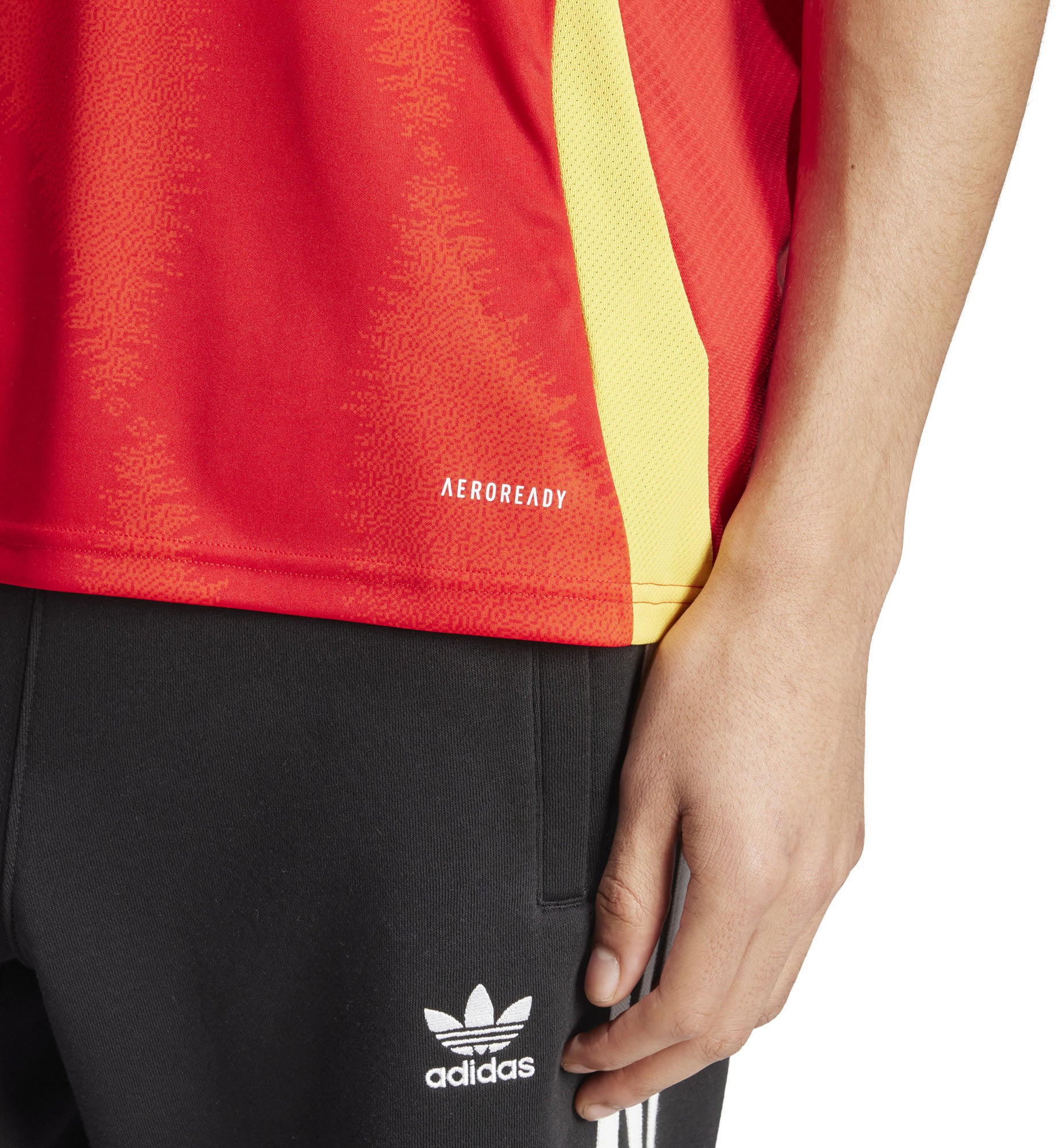 Steun het nationale elftal in deze adidas wedstrijdshort. Hij is afkomstig uit een thuistenue dat is geïnspireerd op de nationale Spaanse bloem, en houdt je met zacht interlock en vochtregulerend AEROREADY comfortabel, of je nu op de tribune zit of thuis tv kijkt. Een geweven teambadge boven de zoom laat je voetballiefde bloeien.